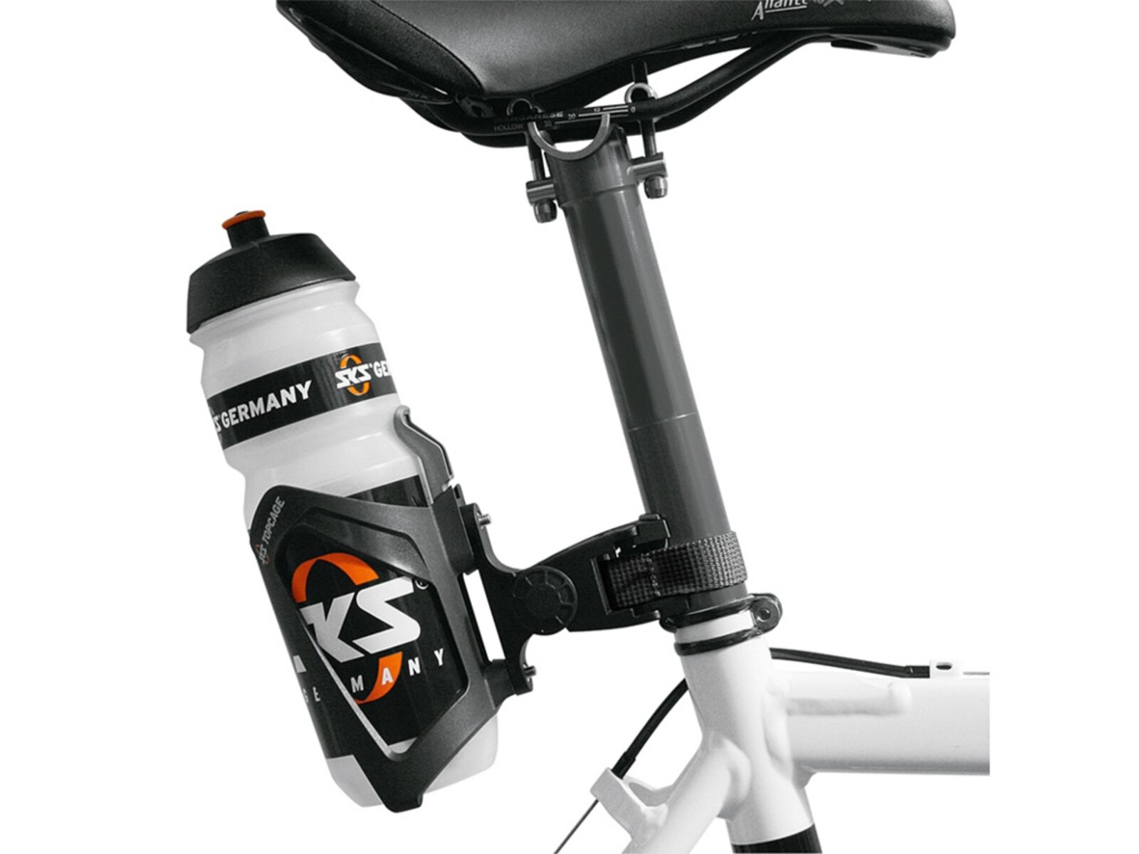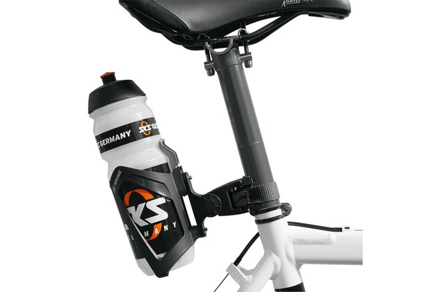 SKS adaptér ke košíku na láhev, vhodný pro všechny rámy bez otvorů na košík. Díky rychloupínacímu systému je použitelný na představec, sedlovku nebo rámovou trubku.