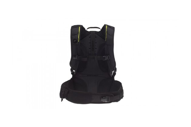 Flexibilní hliníkový profil v zádovém panelu rozkládá zátěž a kopíruje anatomii zad. Batoh tak sedí pevně, nehoupe se a nezatěžuje bederní oblast ani při agresivní jízdě.
