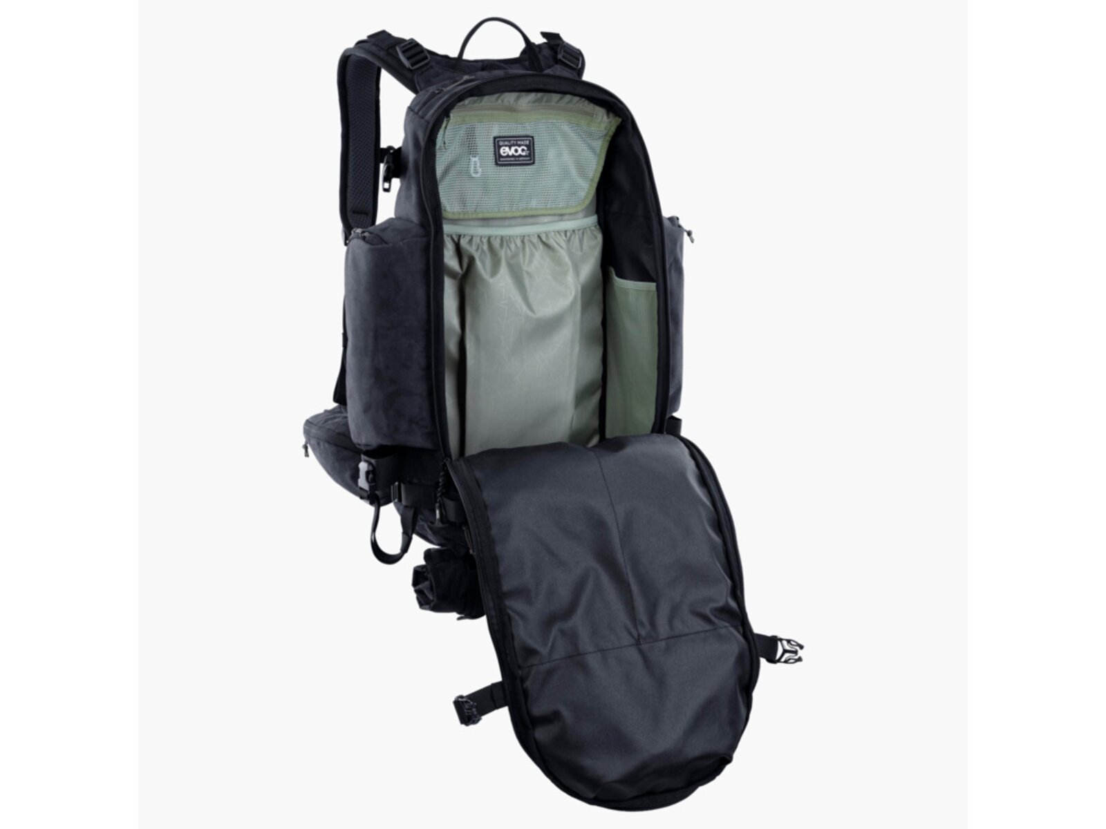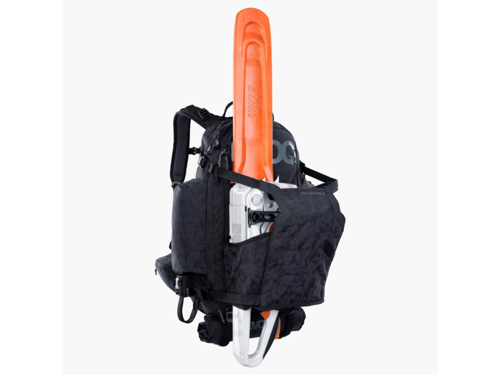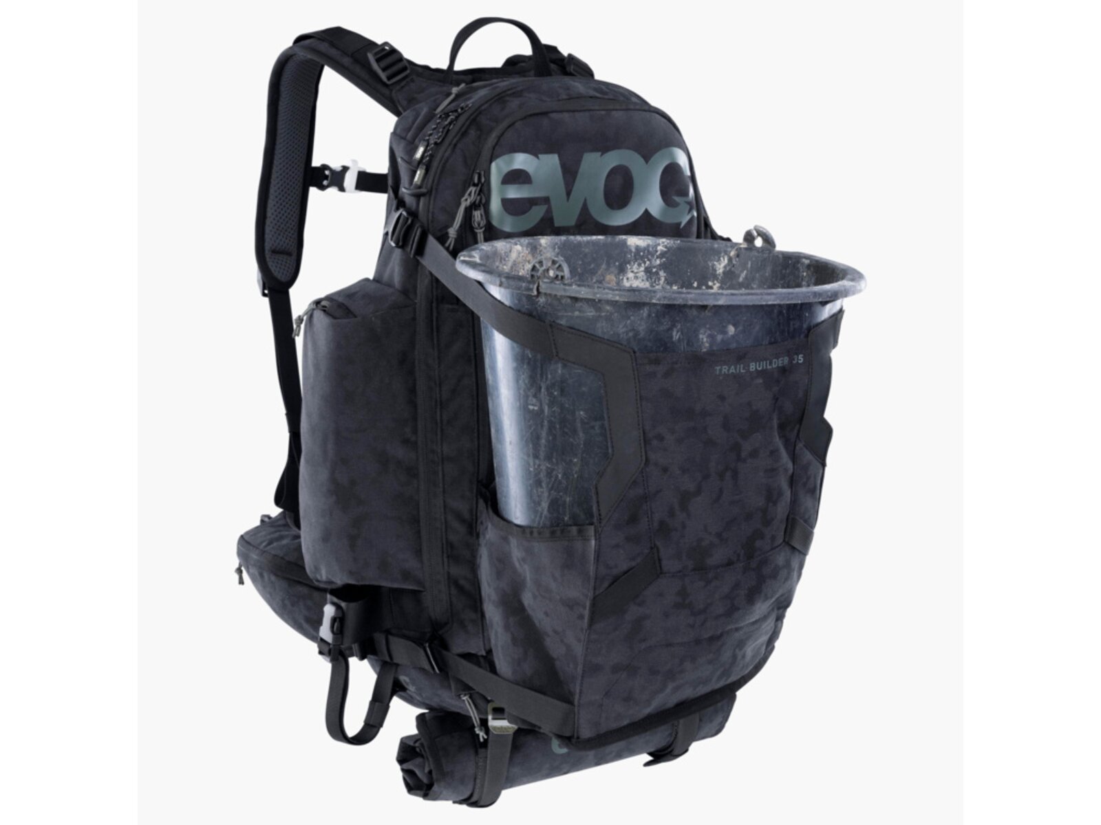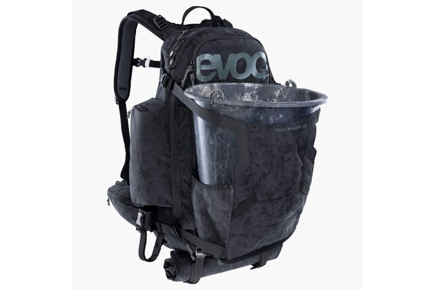 S cílem podpořit stavitele trailů v jejich práci vyvinul EVOC TRAIL BUILDER 35, pečlivě promyšlený batoh s multifunkčním upevňovacím systémem pro bezpečnou a spolehlivou přepravu motorové pily, hrábě, krumpáče a dalšího nářadí. Kromě toho má mnoho praktických přihrádek pro uspořádání veškerého vybavení. Kromě hlavní komory má přihrádku na telefon a brýle, kapsy na bederních pásech, další boční přihrádky, samostatnou přihrádku na nečistoty, jinou na čisté oblečení, přihrádku na nářadí, přihrádku na organizér a také odnímatelný obal na šrouby, hřebíky a další.