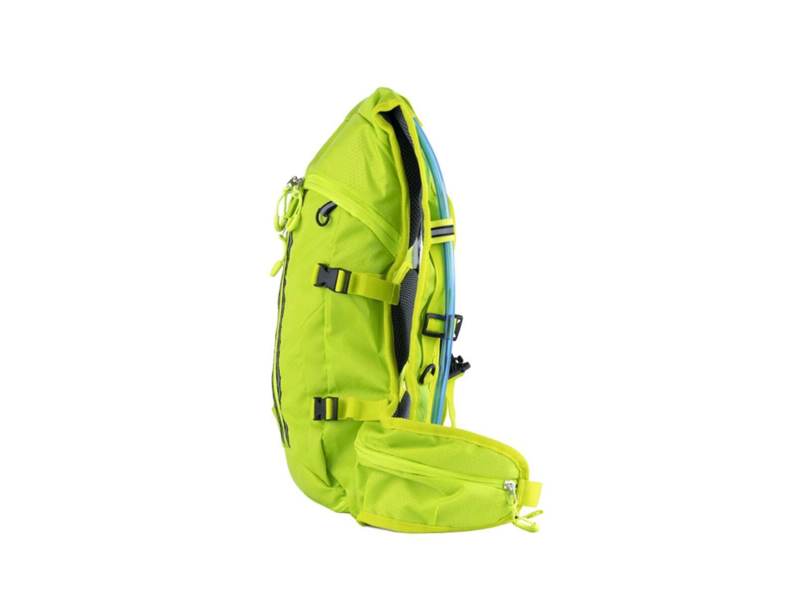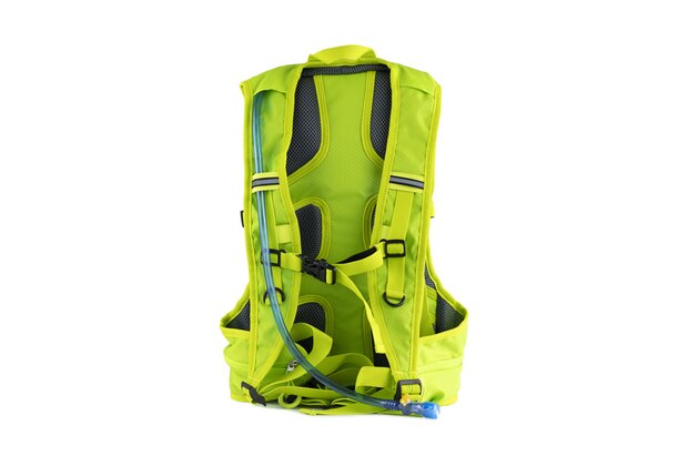 Praktický batoh s vodním rezervoárem o objemu 2 L vás překvapí svou praktičností. Má velkou hlavní kapsu a tři boční kapsy na drobnosti, přídavnou síťku pro uchycení helmy nebo oblečení a reflexní prvky pro lepší viditelnost. Ramenní popruhy batohu byly vyrobeny z prodyšného materiálu pro odvětrávání a prsní popruh spolu se zádovým systémem umožňují pohodlné nošení.