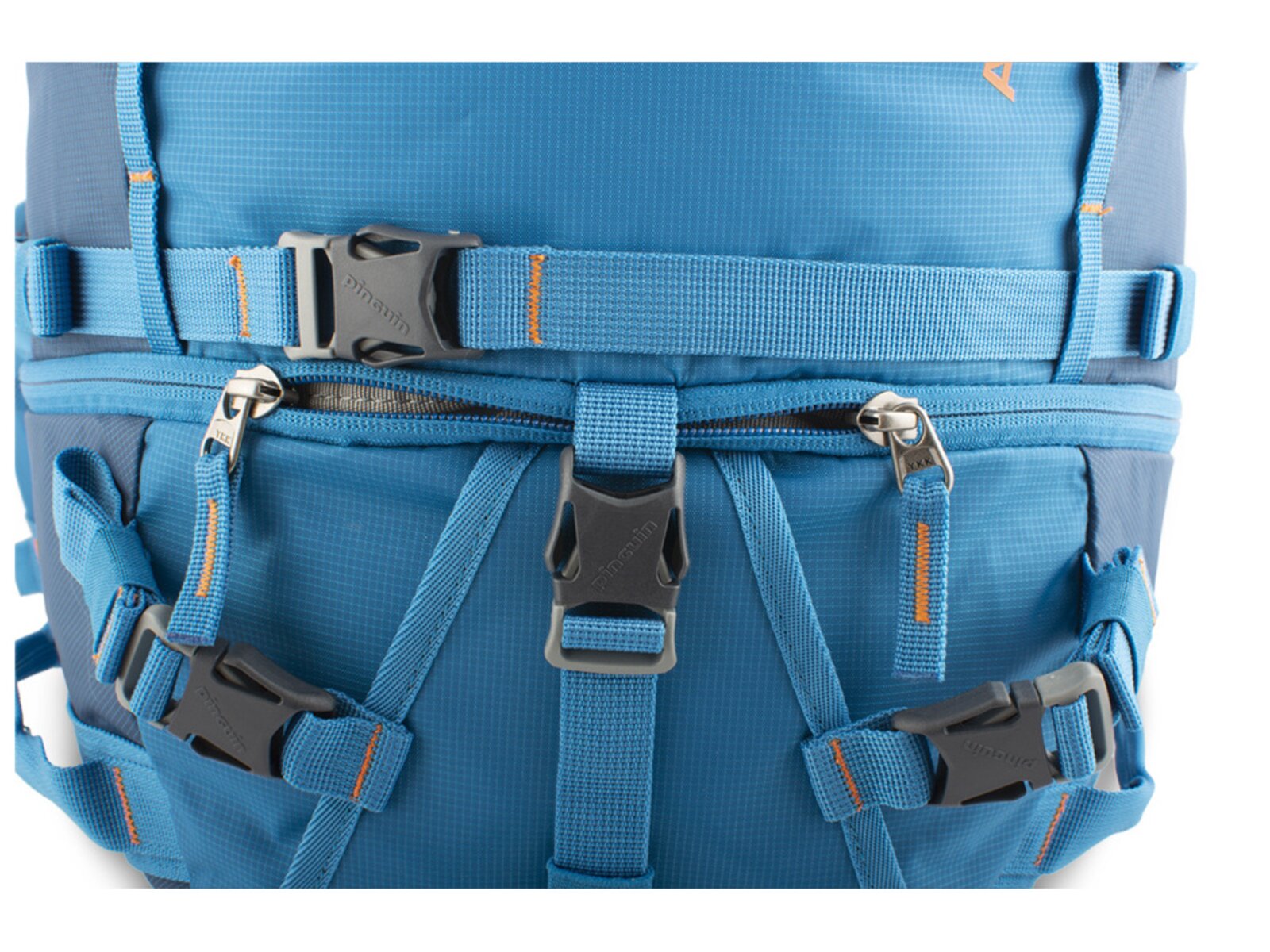 Dva stahovací popruhy kolem celého batohu, jeden s jednou sponou, druhý se třemi