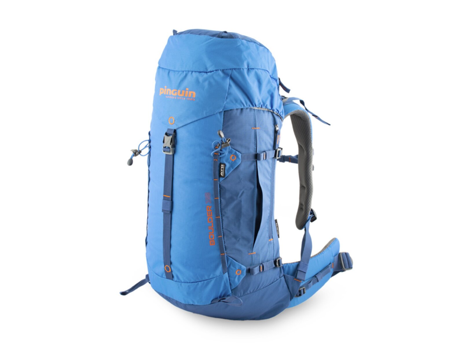 PINGUIN Boulder 38 je batoh s jednou prostornou komorou s horním. Síťovaná zipová kapsa na vnitřní straně víka slouží na cennosti a zaručeně oceníte středový kompresní popruh pod víkem. Vnější zipová kapsa na víku je vhodná k uložení rychle dostupného vybavení (např. lékárny) a potravy. Pohodlný, šitý zádový 3D mesh Back System s polštářky potaženými prodyšnou textilií zajišťuje efektivní odvětrání zad při zachování optimálního rozložení nákladu. Záda batohu jsou vyztužena vyjímatelnou HDPE deskou s integrovanou duralovou výztuží, která pomáhá rozložit hmotnost přepravovaného nákladu na záda a eliminuje tlaky přepravovaných předmětů do zad.
