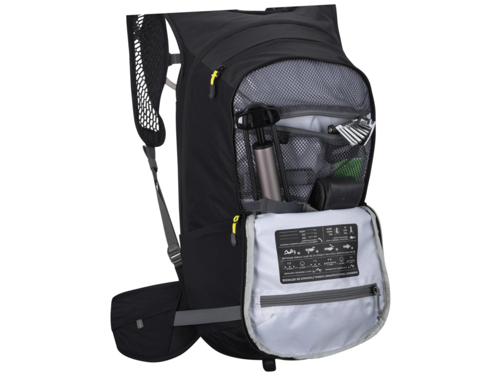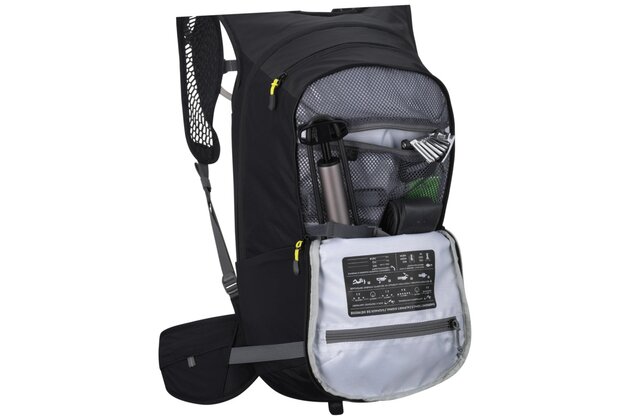 Součástí batohu je 2litrový hydrovak s magnetickým úchytem hadice, který umožňuje rychlé a pohodlné pití bez nutnosti sundávat batoh. Chytré uspořádání kapes zahrnuje přední kapsu na nářadí, pružné boční kapsy i kapsu na bederním pásu pro drobnosti, které chcete mít stále po ruce.