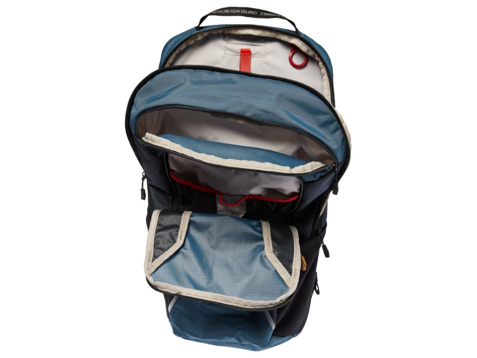 Hlavní tkanina: 100% Polyester (recyklovaný), 600D / PU zátěr / plátnová vazba