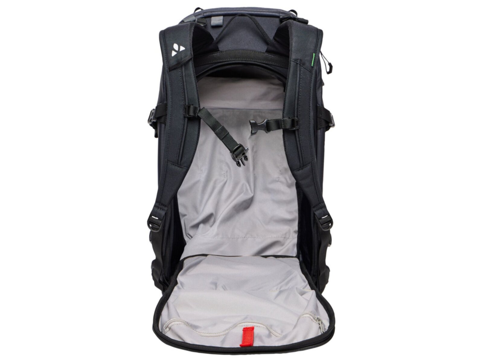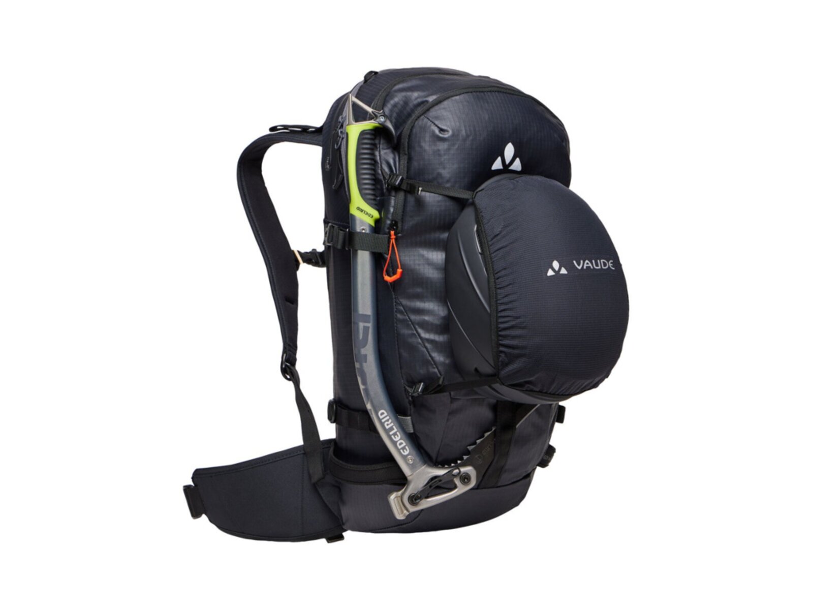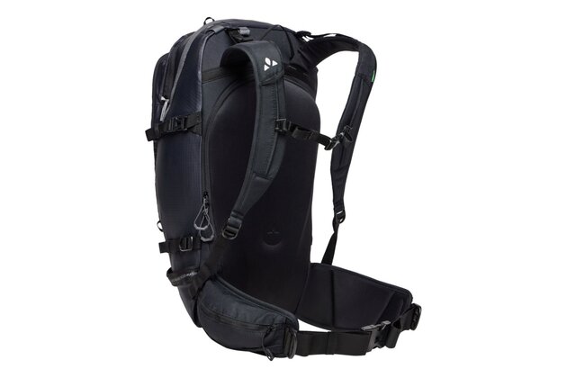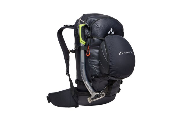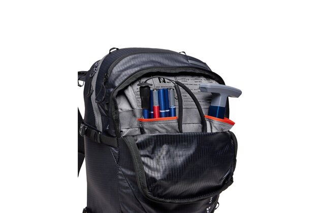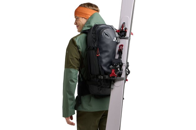 Nabízí všestranné možnosti uchycení lyží a snowboardu, včetně diagonálního a bočního uchycení lyží a předního uchycení prkna. Batoh je vybaven tvarovaným zádovým panelem odolným proti sněhu a ergonomickými výztuhami ErgoShape pro optimální volnost pohybu. V přední přihrádce je prostor pro lopatu a sondu a polstrovaný bederní pás s kapsou poskytuje další pohodlí a funkčnost. Je vybaven řadou dalších prvků, jako je výsuvný držák na přilbu, polstrovaná kapsa na brýle, upevňovací bod na ledové nářadí a boční kompresní popruhy. Batoh je také vybaven hrudním popruhem s píšťalkou a informačním panelem pro případ nouze v horách uvnitř hlavní komory. Batoh je navíc kompatibilní s hydratačním systémem, takže je ideální volbou pro dlouhé skialpové výpravy.