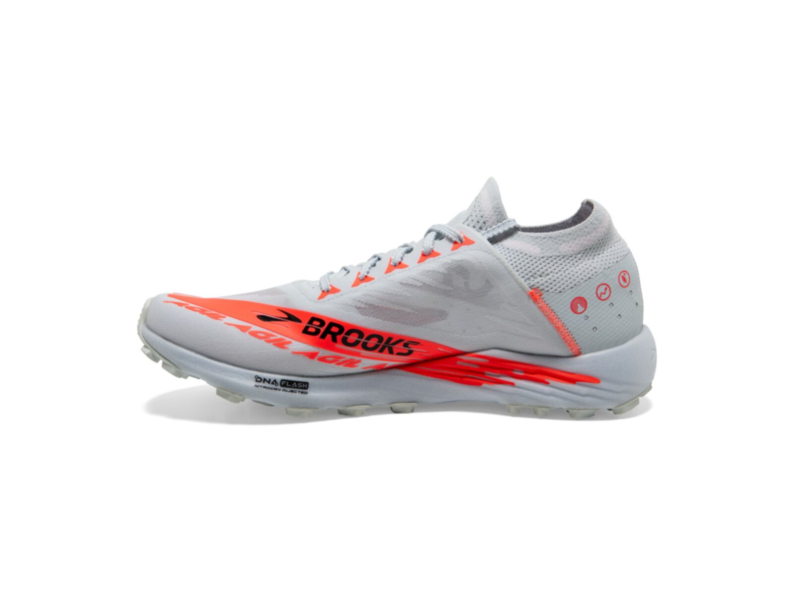 Podešev s výškou špuntů 4,5 mm má vylepšenou trakci jak na suchém, tak mokrém povrchu. V Brooksu klademe velký důraz na udržitelnost a ochranu přírody, proto je podešev vyrobena ze 25 % z recyklovaných materiálů.