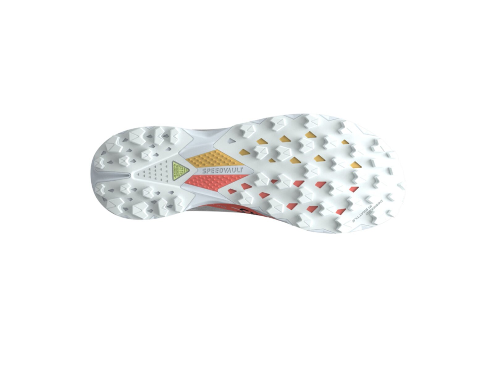 Jádro boty tvoří nová generace tlumení DNA FLASH v2. Kombinace dusíkem sycené EVA a energetické TPE pěny. Extrémně nízká hmotnost, vysoká energetická návratnost a přitom stabilita a přesnost bez které to v trailu jde jen velmi těžko. Tlumení je doplněno Pebaxovým plátem SpeedVault Trail, který pomáhá směřovat energii do odrazu a zároveň plní roli chrániče při dopadu na ostré kameny.