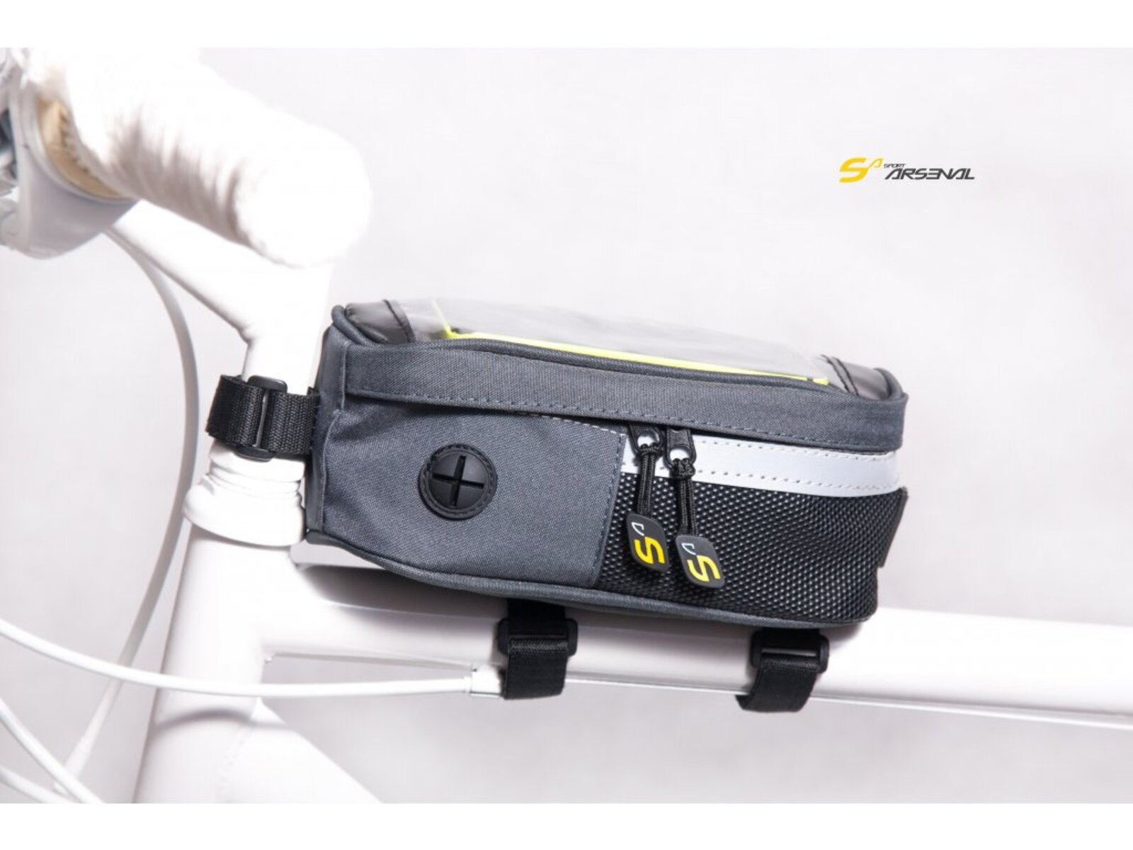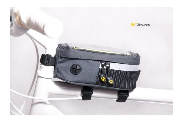 Brašna na přední část rámu a na představec řídítek. Praktická objemná brašna na veškeré nezbytnosti, které je třeba mít stále na očích (mobilní telefon, kompaktní fotoaparát, peněženka, klíče, sušenka).