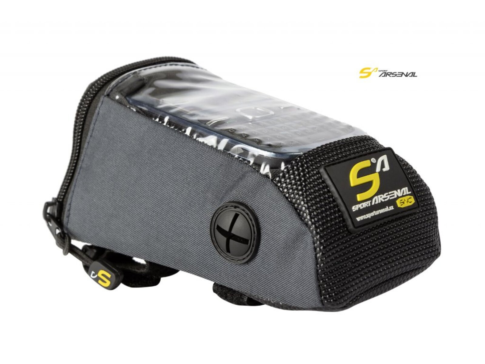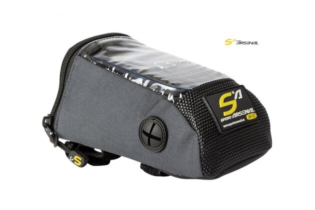 Řídítková brašna na horní část představce řídítek vhodná pro telefon nebo MP3 přehrávač. Boční gumový vývod pro vaše sluchátka. Průsvitný vrchní díl brašny umožňuje vizuální kontrolu displeje. Jednoduché nasazení brašny pomocí suchých zipů.