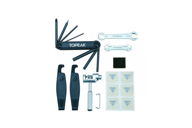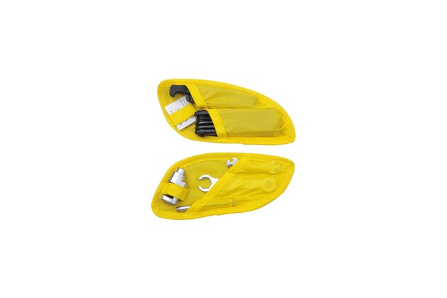 V pravé boční části je uložena sada nářadí: inbusové klíče 2/3/4/5/6 mm, křížový a plochý šroubovák, 8 a 10 mm vidlicový klíč, 14/15/Mavic M7/Shimano centrovací klíč, univerzální nýtovač řetězu hákem, 2 montážní páčky a 6 samolepících záplat na defektyQuickClick rychloupínací držák F25 + suchozipový popruh na sloupek sedla usnadňuje upínání a odnímání tím nejrychlejším a nejjednodušším způsobem