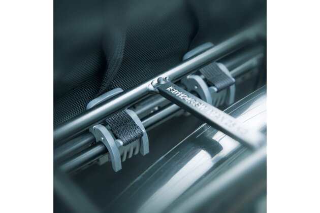 Brašnu na kolo lze snadno připevnit na boční vzpěru nosiče zavazadel pomocí montážního systému Vertex a individuálně přizpůsobit. Háčky jsou samosvorné a zabraňují pádu tašky na hrbolatých cestách. K uvolnění stačí brašnu zvednout a poté lze tašku přepravovat pomocí rukojeti.