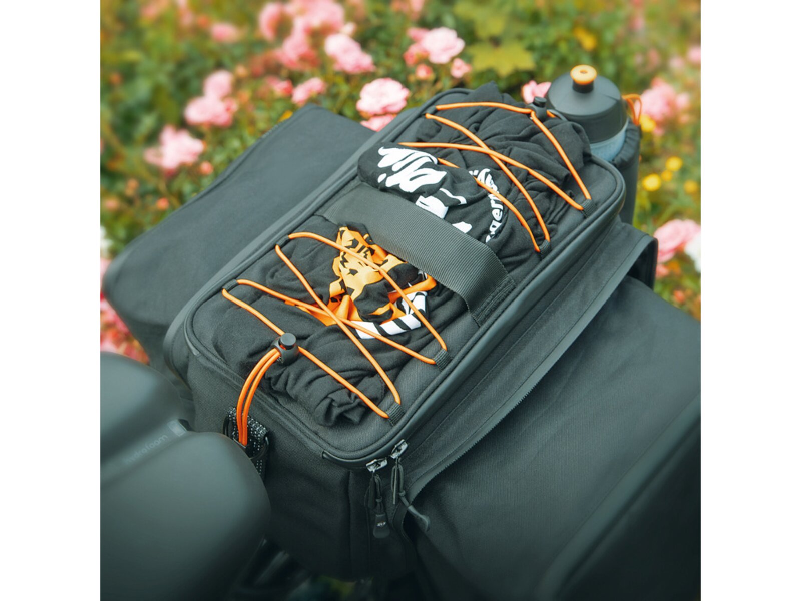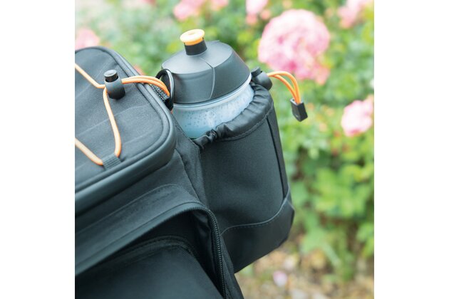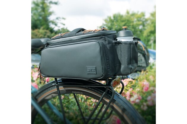 Už žádný chaos ve vaší brašně! Přihrádka vzadu, vnitřní přepážka a síťovaná přihrádka v horní části brašny vytvářejí pořádek a umožňují rychlý přístup. Vršek lze plně otevřít pomocí zipu Easyzip. Dvojitá síťovaná kapsa pojme další drobnosti. Reflexní poutka jsou připevněna na přední a zadní straně pro lepší viditelnost v silničním provozu. Robustní rukojeť a ramenní popruh usnadňují přepravu brašny, i když kolo nepoužíváte. Rozsáhlou výbavu doplňuje praktický nepromokavý obal.