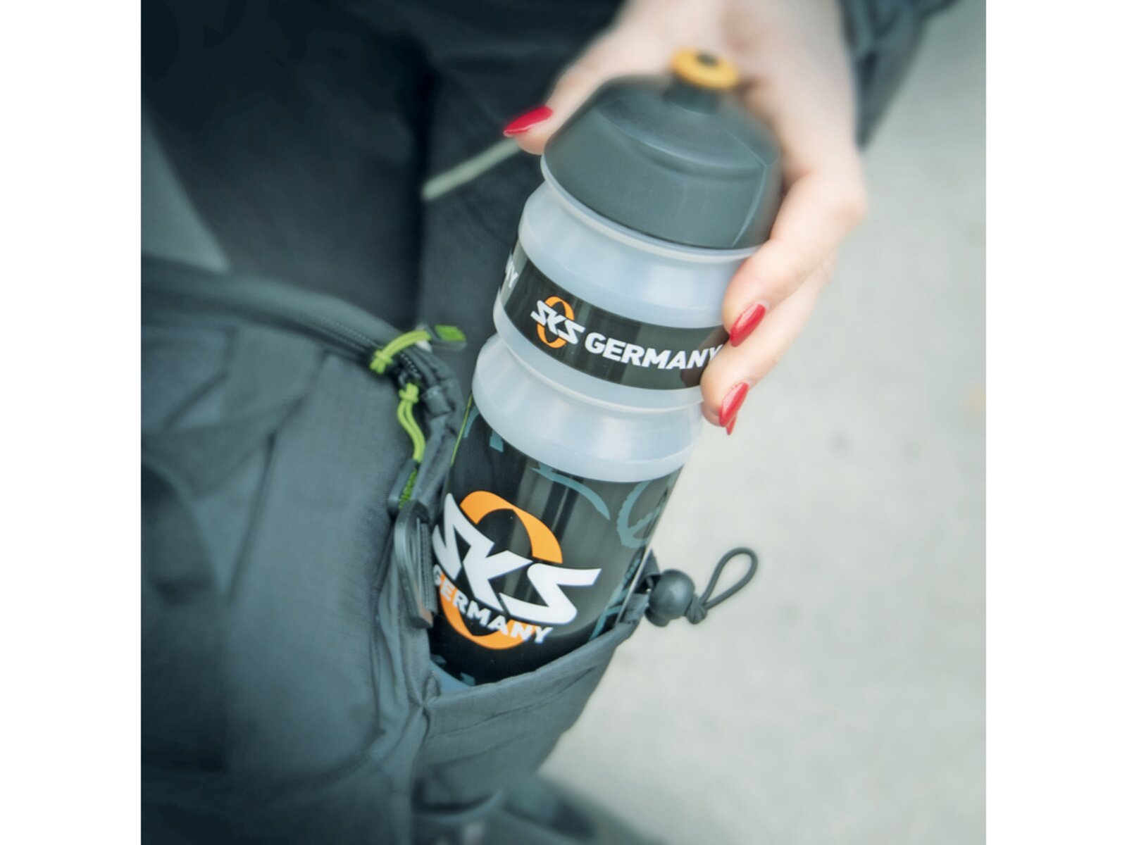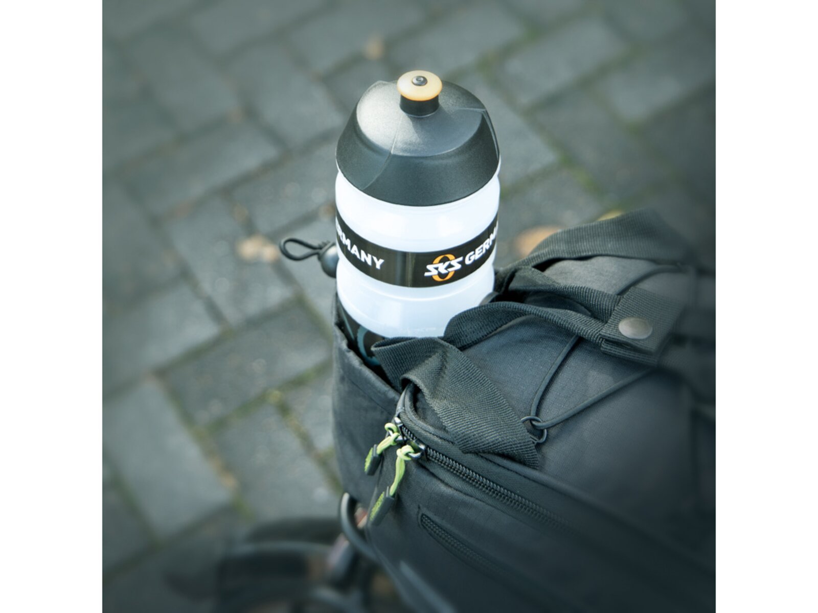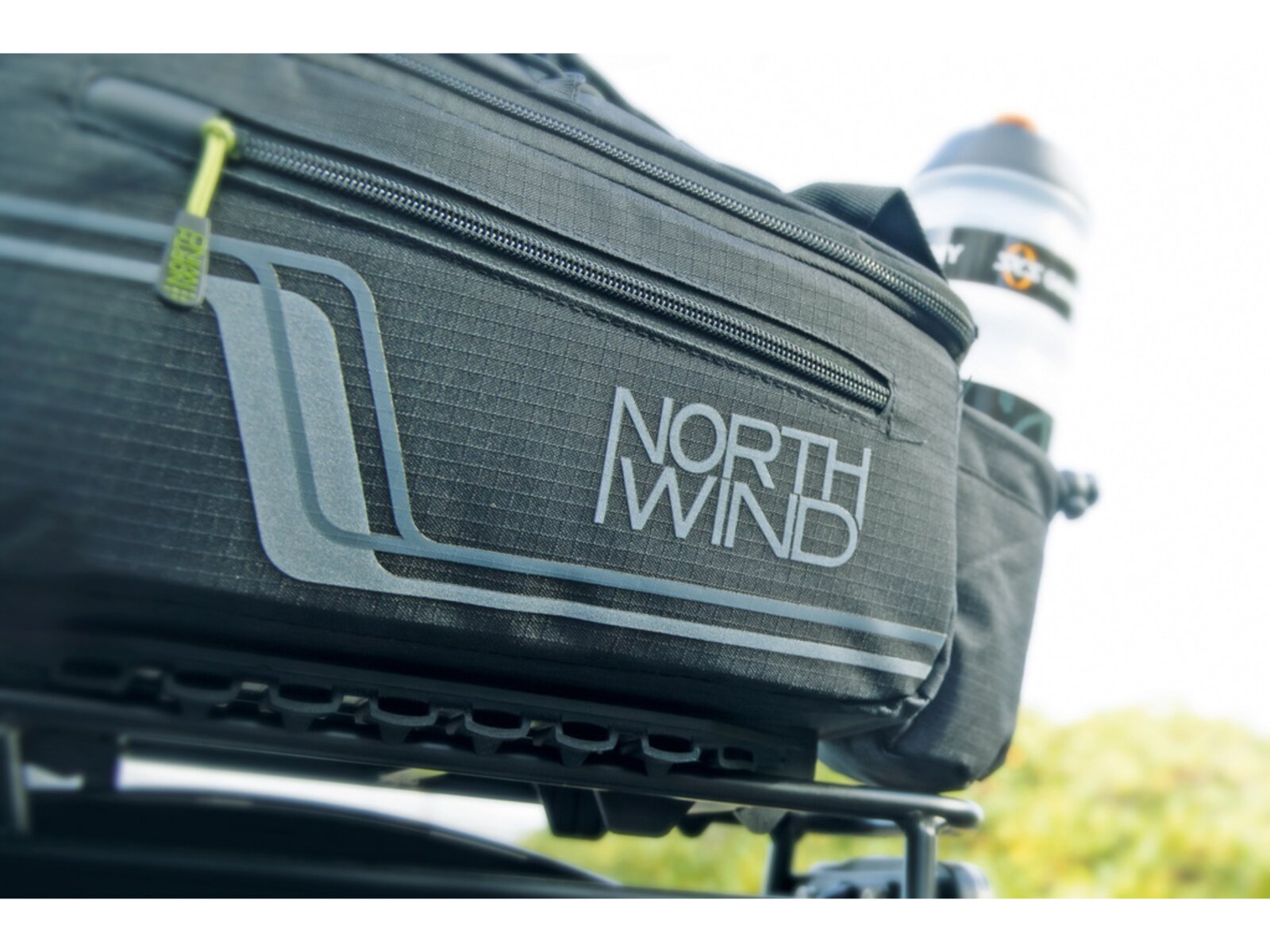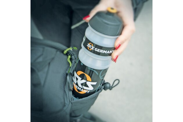 Multifunkční brašna s držákem nápojů a přihrádkami. Ty jsou umístěny po stranách a v horní kapse, aby byl rychlý přístup k mobilnímu telefonu, klíči a peněžence. Úložná kapsa z elastické síťoviny umožňuje převážet další zavazadla. Pláštěnka udrží tašku a obsah v suchu, zatímco reflexní prvky na voděodpudivé nylonové tkanině zajišťují viditelnost ve tmě.