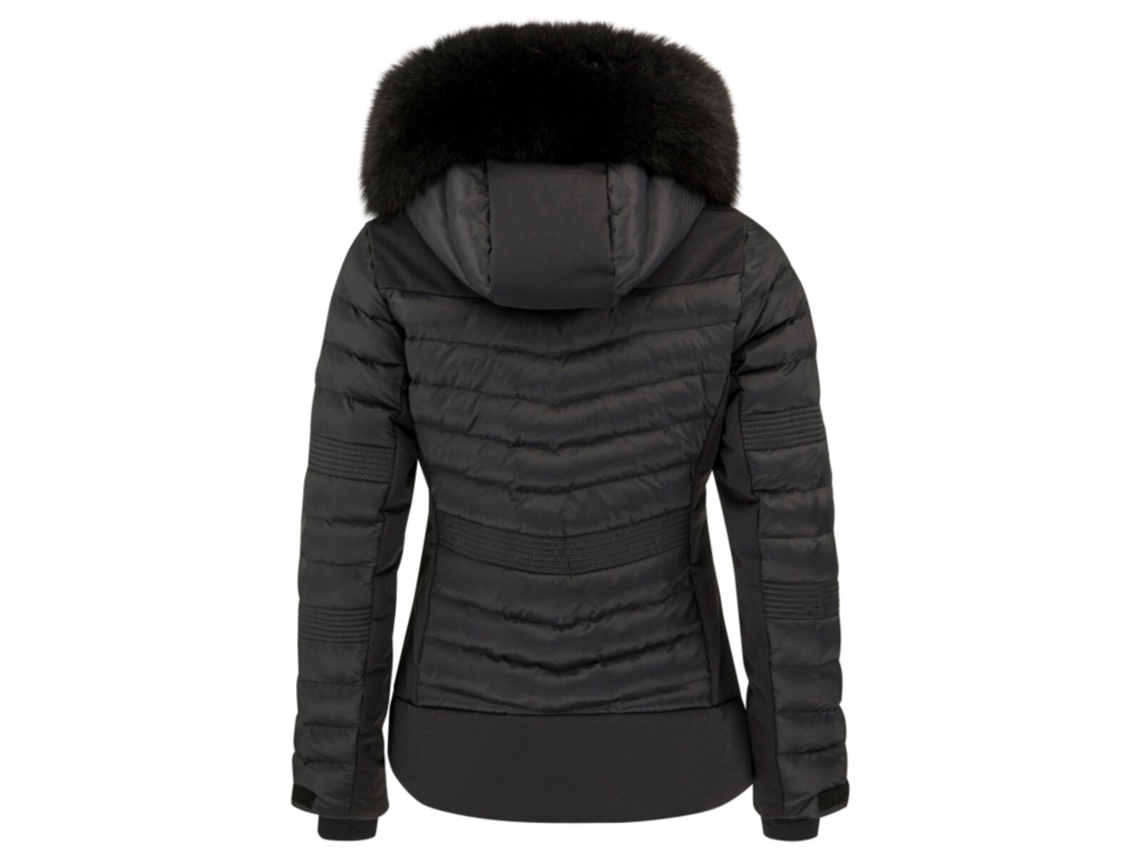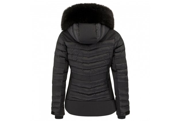 Luxusním detailem je pravá kožešina z modré lišky na odnímatelné kapuci, která dodává bundě výjimečný vzhled a hřejivý komfort. Bunda má plně podlepené švy, což zaručuje nekompromisní ochranu před vlhkostí, a vnitřní kapsy, včetně kapsy na brýle, pro praktické uložení drobností. Elastické a nastavitelné manžety zlepšují padnutí a chrání před pronikáním chladu.