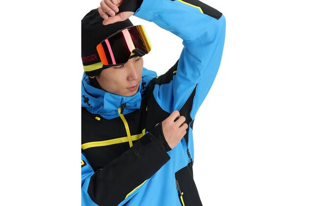 Lyžařská bunda SPYDER Titan Aether Blue je ideální k tomu, aby Vás udržela v teple a pohodlí během vašich zimních dobrodružství. Je vybavena čtyřsměrným strečovým pláštěm EXO Shield 30K, který poskytuje maximální ochranu před živly. Díky 60 g izolaci PrimaLoft Silver Eco vás tato bunda udrží v teple a pohodlí. Větrání v podpaží umožňuje přizpůsobitelnou regulaci teploty, zatímco sněžný pás chrání před sněhem. Bezpečné náprsní kapsy a kapsy na karty udrží vaše základní věci v bezpečí a na dosah ruky, takže si zimní aktivity můžete užít stylově a pohodlně.