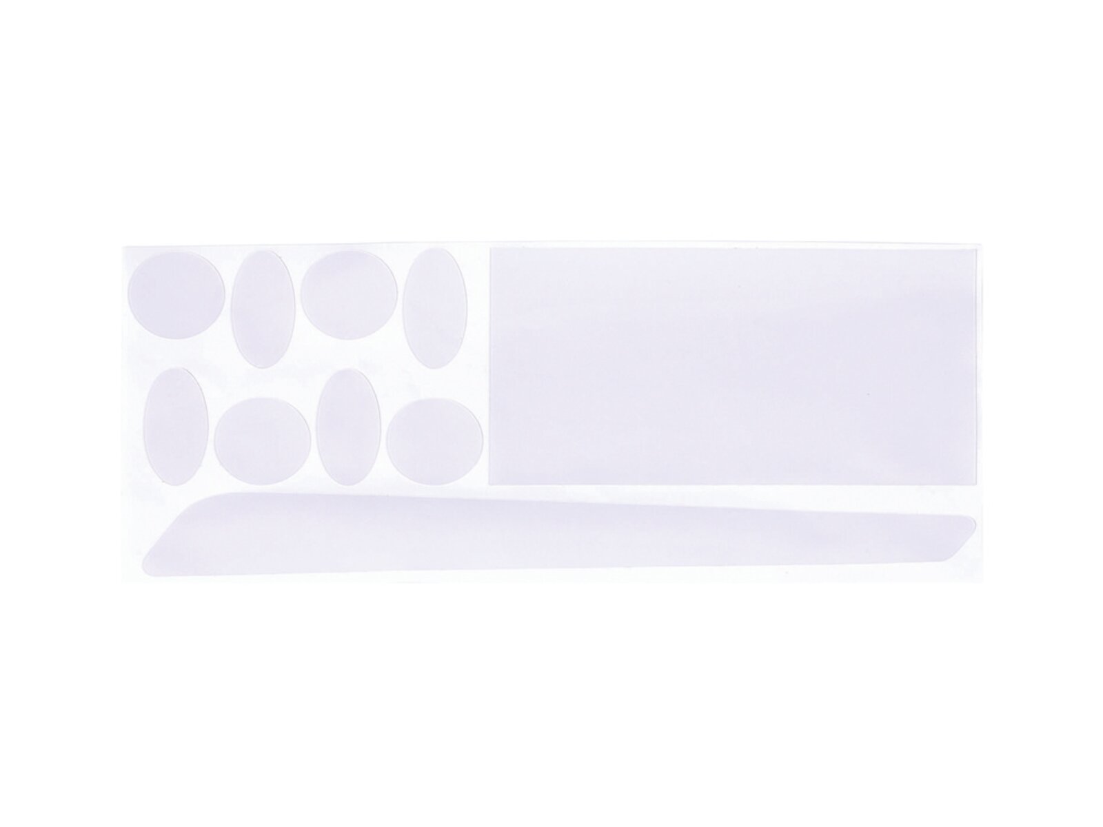 Sada obsahuje: 1x chránič pod řetěz, 1x obdélník 80x152 mm, 4x samolepku 30 mm a 4x samolepku 20x40 mm.