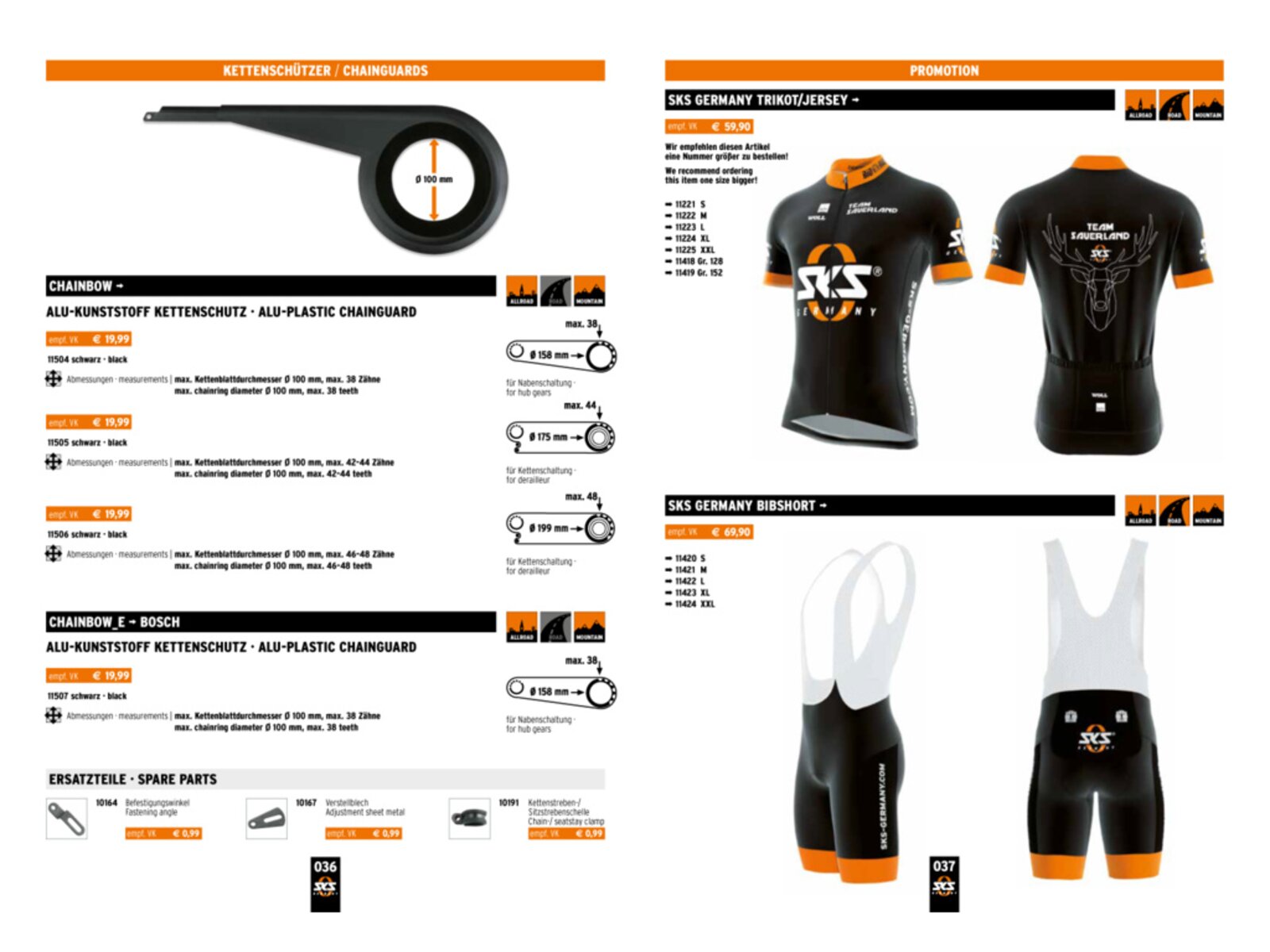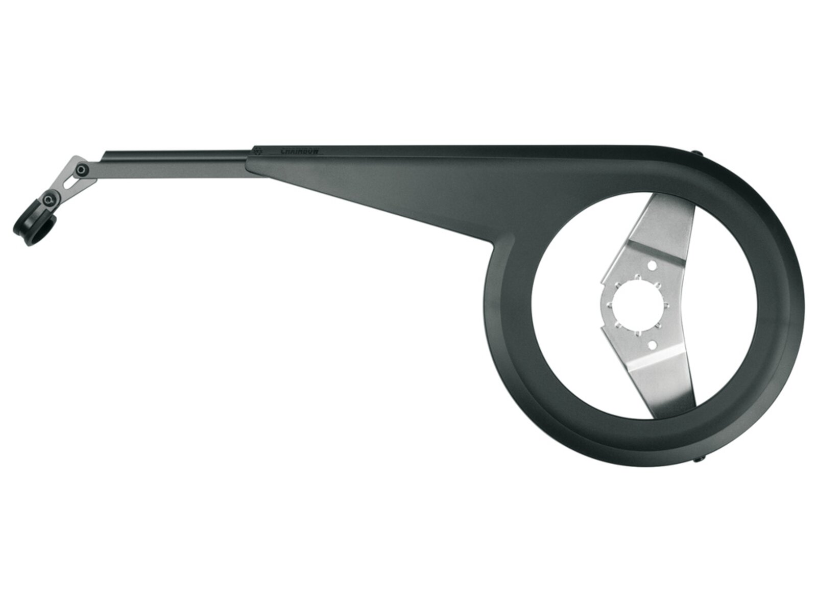 Chránič řetězu SKS Chainbow 44 Teeth je hliníkovo-plastový kryt navržený pro převodníky s maximálním průměrem 175 mm, což odpovídá 42–44 zubům. Tento chránič účinně zabraňuje znečištění a poškození oděvu během jízdy na kole. Je kompatibilní s různými typy kol a poskytuje spolehlivou ochranu řetězu i převodníku.