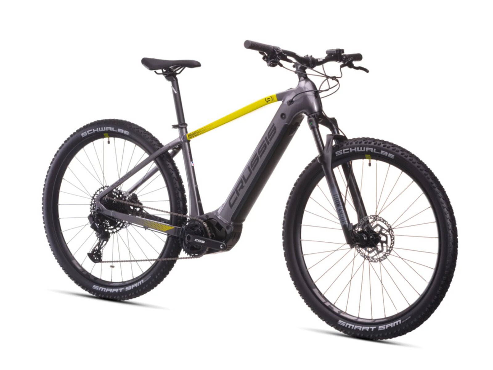 CRUSSIS e-Largo 9.11 s baterií 894 Wh představuje výkonný model horského elektrokola s důrazem na dlouhý dojezd a univerzálnost v terénu. Rám z hliníkové slitiny ALU 6061 s geometrií pro 29" kola poskytuje přirozený posed, vynikající stabilitu a jistotu i při rychlé jízdě. Vzduchová vidlice RockShox Judy Silver TK Solo Air se zdvihem 100 mm efektivně tlumí nárazy a přispívá k plynulému ovládání kola.