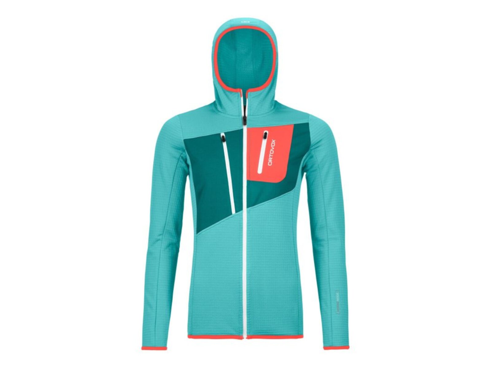 ORTOVOX Fleece Grid je zateplená dámská mikina s kapucí, ve které se můžete oddávat jakékoli outdoorové aktivitě v nepříznivém počasí. Je skvělou volbou pro všechny horolezce i milovníky vysokohorské turistiky, kteří hledají lehké, prodyšné a zároveň odolné a dobře izolující oblečení pro náročné výpravy do hor. Je vyrobena z polyesteru, vlny, polyamidu a elastanu, což zajišťuje tepelnou funkci, ale především elasticitu a perfektní padnutí. Hřejivost a pohodlí zajišťuje fleece z Merino vlny, která je získávána z certifikovaných ovčích farem, které dodržují etické zásady zacházení se zvířaty. Pouze totiž vlna od tasmánských ovcí vyhovuje svojí kvalitou náročným požadavkům značky ORTOVOX. Vlna je 100% ekologická, a proto je i mimořádně udržitelná. Velkou výhodou této mikiny je i její ergonomický střih a praktický límec, který tě ochrání před ostrým horským sluncem či větrem. Strečový materiál, kapsy na zip a reflexní prvky dostávají model k dokonalosti.