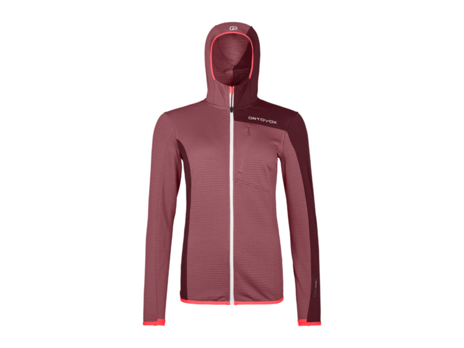 ORTOVOX Fleece Light Grid je dámská mikina s kapucí a dokonalý společník pro náročné túry v horách. Hladký a strečový materiál na vnější straně mikiny snáze odolává oděru, zatímco hebká podšívka z nejkvalitnější merino vlny je úžasně lehká, má termoregulační schopnosti a odvádí pot, takže zůstanete v suchu za každých okolností. Kombinace polyesteru a vaflové konstrukce na vnitřní vlněné straně vytváří neoprenový efekt, kdy se na vnitřní straně drží teplo ve vzduchových kapsách a vnější polyesterový úplet zabraňuje profouknutí a vytváří bariéru proti ztrátě tepla.