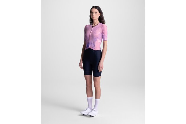 • Inovativní střih: Rozpojený přední díl umožňuje plné rozepnutí dresu nezávisle na šortkách, což je klíčové pro extra ventilaci při extrémním nárůstu teploty.