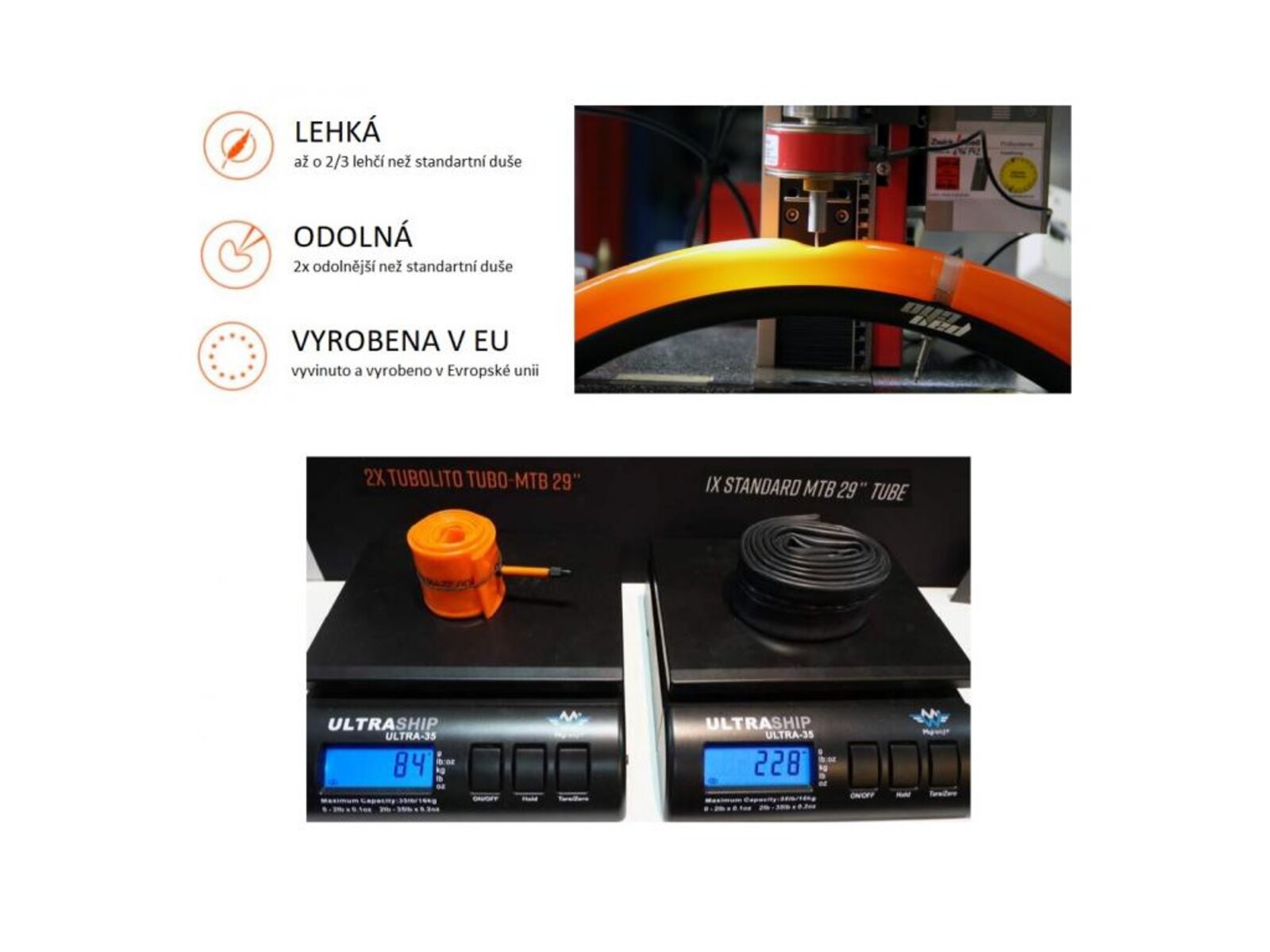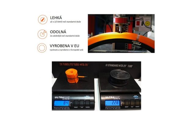 Duše TUBOLITO MTB je ultralehká duše z inovativního materiálu, vyvinutá se zaměřením na horská kola. V porovnání s klasickou duší má výrazně vyšší odolnost proti procvaknutí a váhovou úsporu 60%!