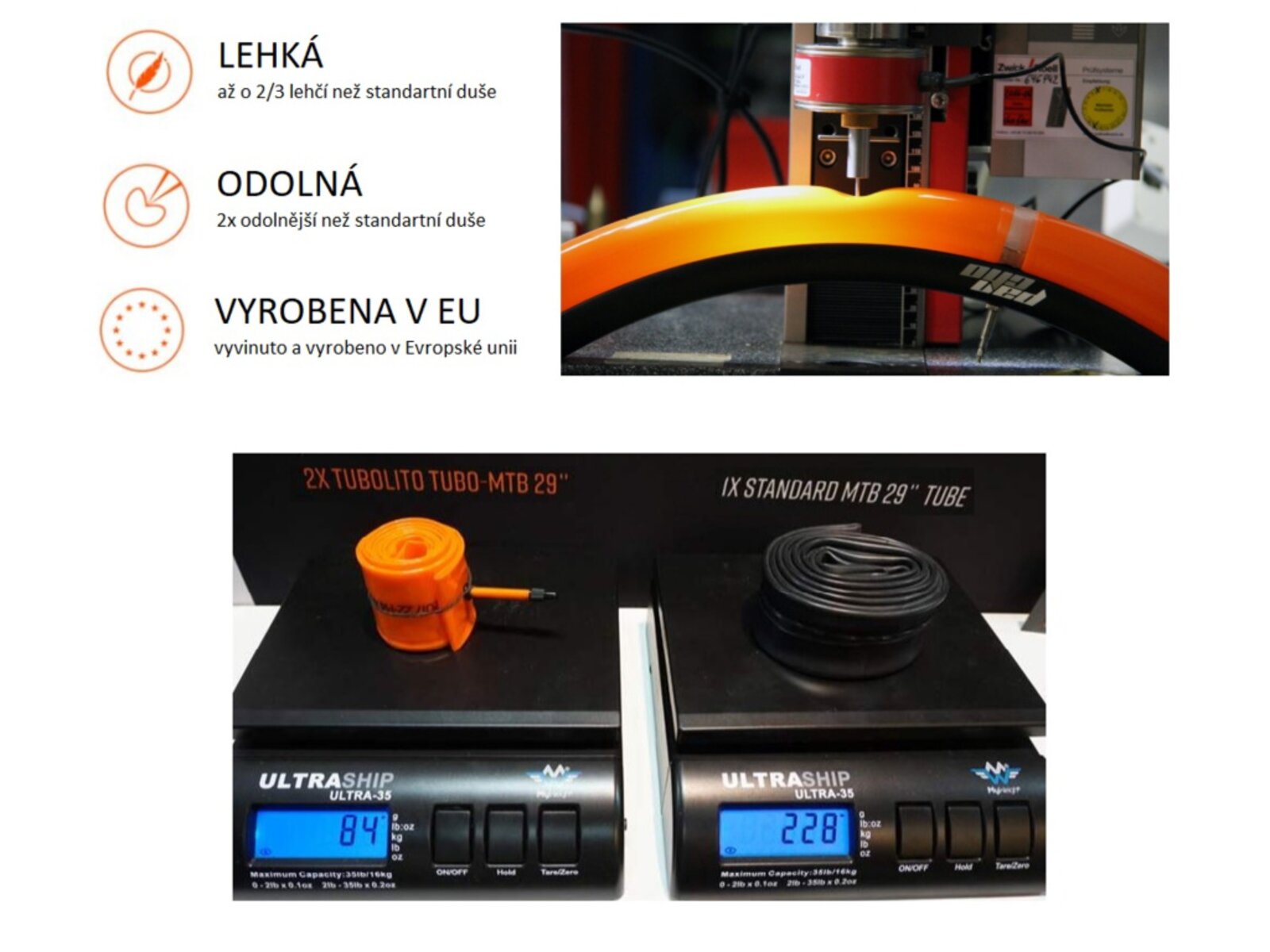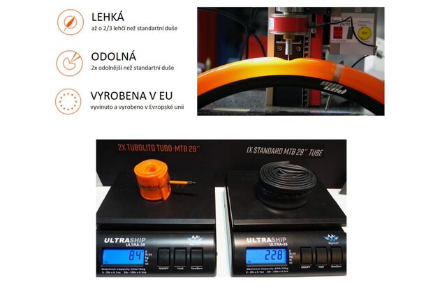 Duše TUBOLITO MTB Plus je ultralehká duše z inovativního materiálu, vyvinutá se zaměřením na pluskové pláště používané na MTB elektrokolech. V porovnání s klasickou duší má výrazně vyšší odolnost proti procvaknutí a váhovou úsporu 60%!