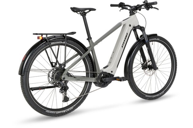 Rám je k dispozici v široké škále velikostí – s koly 29" (27,5" u vel. 14") podle výšky jezdce. Vzduchová vidlice SR Suntour XCR36X Boost s 120 mm zdvihem dodává kolu komfort v terénu, zatímco pláště Schwalbe Jonny Watts (60 mm) zajišťují pohodlnou a tichou jízdu po jakémkoli povrchu.