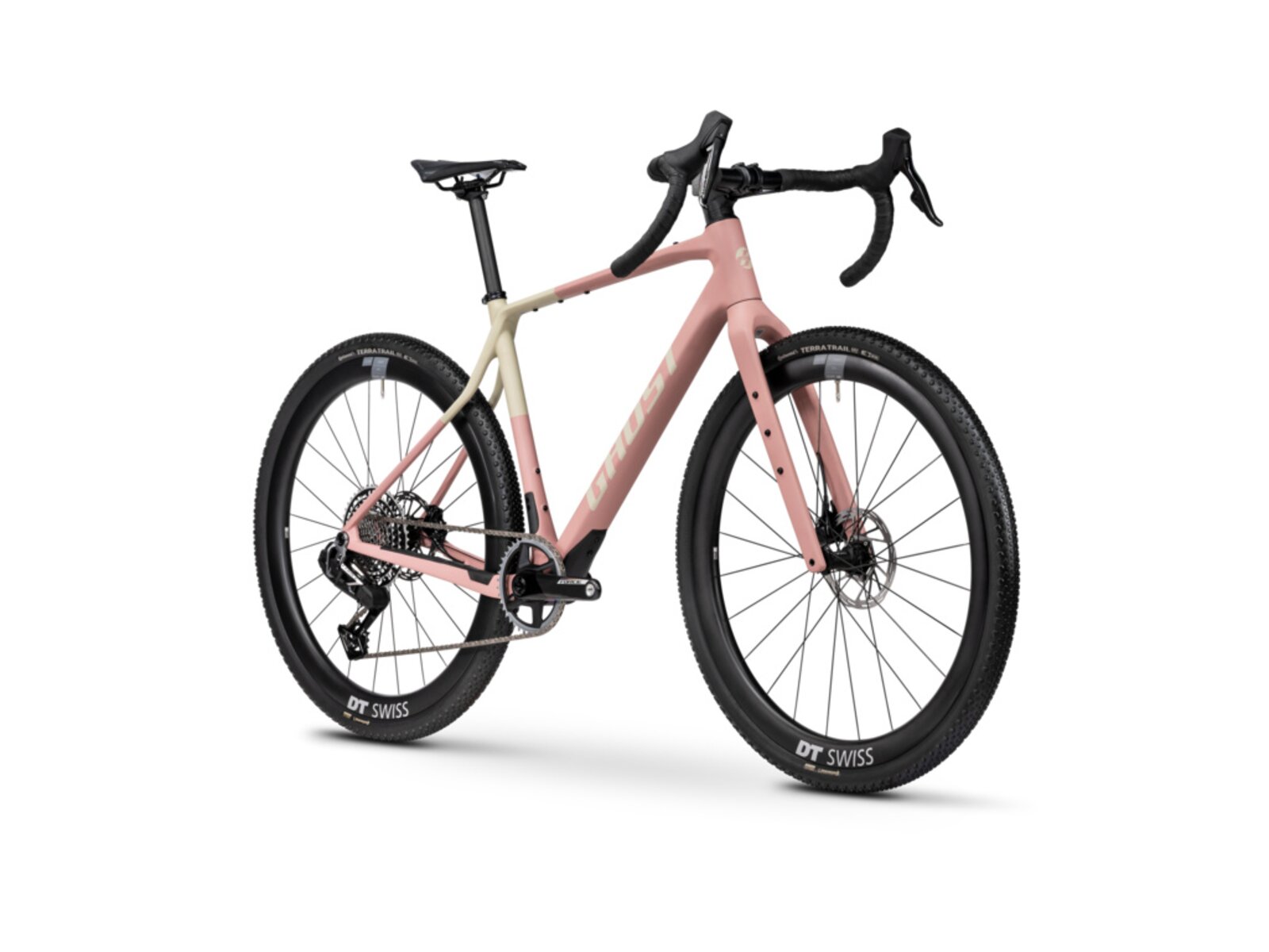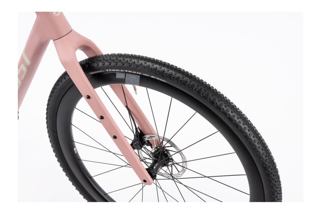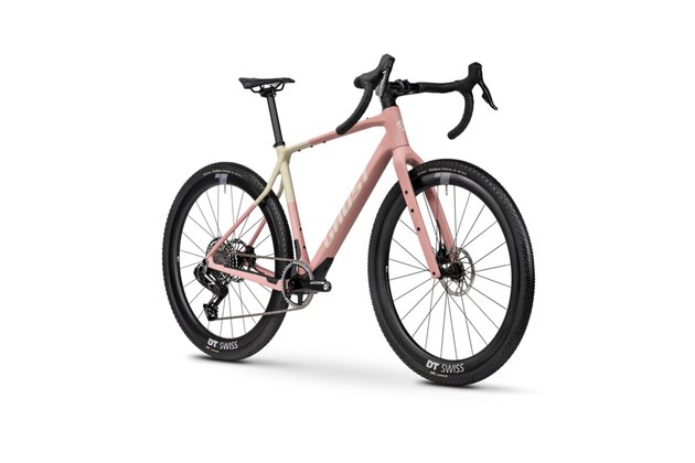 Asket CF X: Růžový rám pohání 13rychlostní elektrická sada SRAM XPLR AXS a karbonovými koly DT Swiss GRC 1600 SP.