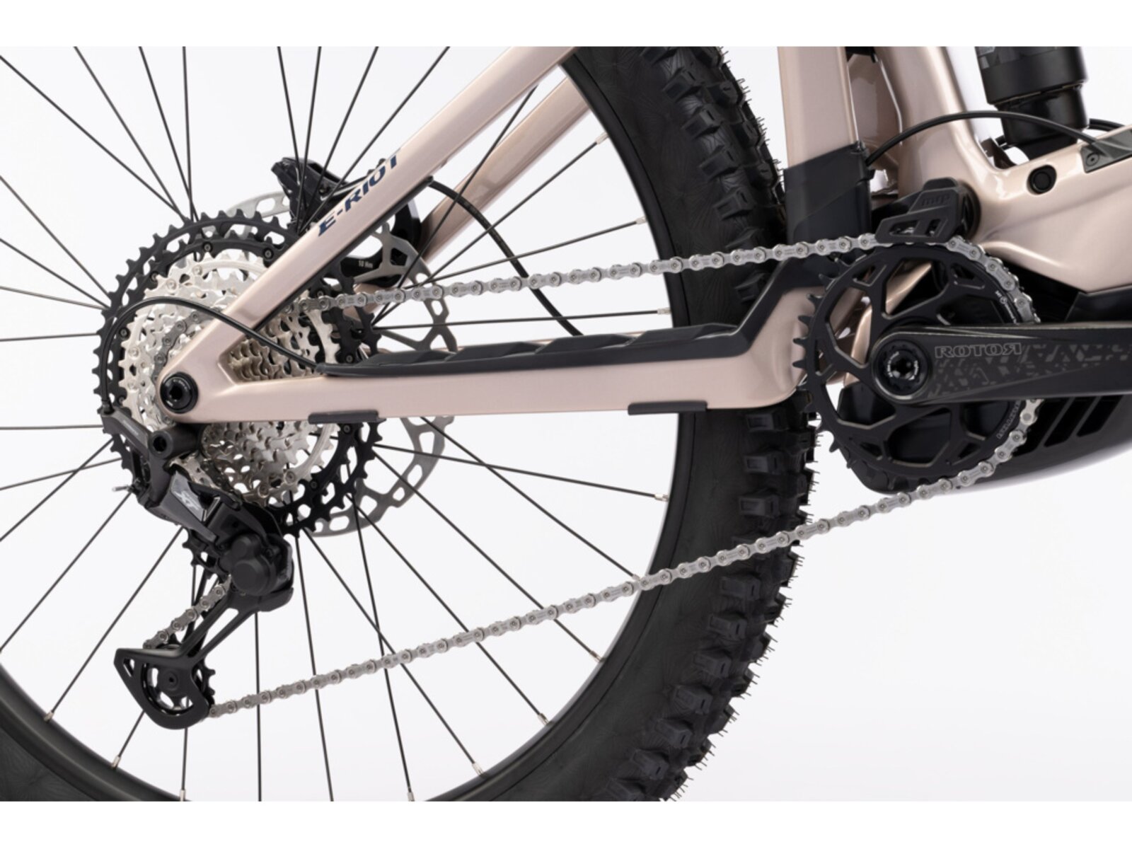 Každá verze E-RIOTu přichází s propracovanými detaily, které posouvají zážitek z jízdy na novou úroveň. Mezi ně patří systém přepákování Tractionlink 2.0 pro optimální trakci a odpružení, pevná, jednodílná zadní stavba z karbonu a koncept VPP (Virtual Pivot Point), který zajišťuje citlivější odezvu a lepší podporu ve středu zdvihu. Design odpružení s virtuálním otočným bodem (VPP) využívá systém přepákování, který vytváří „virtuální“ otočný bod pohybující se při kompresi odpružení, což optimalizuje dráhu zadního kola a efektivitu šlapání. Na rozdíl od konstrukcí s jedním otočným bodem umožňuje VPP zadnímu kolu následovat zpočátku dráhu nahoru a dozadu, což zlepšuje překonávání překážek, pohlcování nárazů a zajišťuje lepší trakci. Tento design zvyšuje stabilitu a kontrolu, snižuje zpětný ráz při šlapání (kickback) a je ideální pro technický terén. Mullet konfigurace, v kombinaci s novou vidlicí Rock Shox Zeb 3.1 nebo Fox 38 Grip X2 a plášti Continental Kryptotal, zajišťují, že E-RIOT zůstává sebejistý i v nejtvrdším terénu.