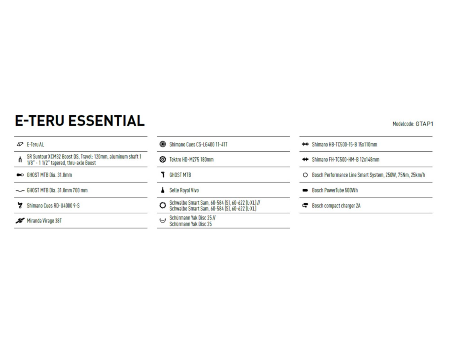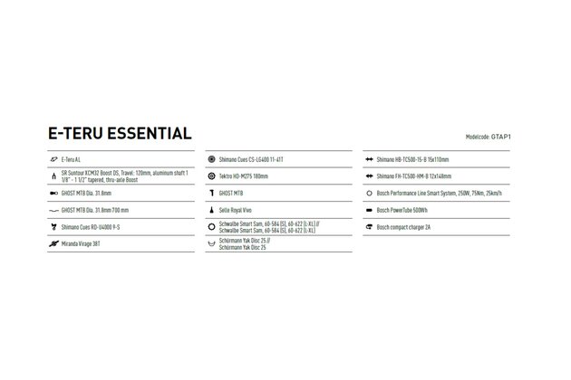 Vyladěná kombinace propracovaného designu, výkonného motoru Bosch Performance s 85 Nm kroutivého momentu, 120 mm zdvihu a 29palcová kola vám zajistí bezproblémové zdolání jakéhokoli terénu. Během jízdy můžete měnit režimy asistence podle toho, jak velkou přípomoc zrovna budete potřebovat. Veškeré jízdní údaje jako jsou vzdálenost, rychlost, stav nabití baterie nebo stupeň asistence se zobrazují na dobře čitelném displeji. O bezproblémový chod jízdy se stará řazení Shimano Alivio s 1x9 převody a o perfektní brzdný účinek spolehlivé Tektro HD-M275. Ghost E-Teru je jednoduše parťák do nepohody, na kterého se můžete spolehnout.