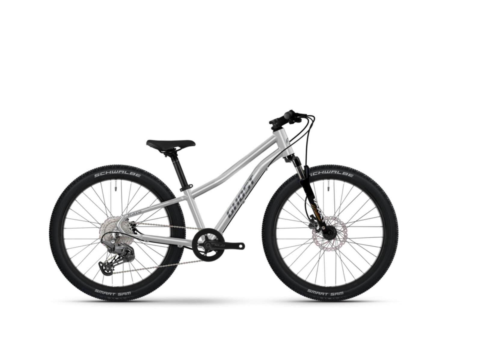 Model GHOST Kato 24 Full Party je plně vybavené 24palcové dětské horské kolo, které s přehledem zvládne i náročnější terén. Jeho hliníkový rám je optimalizovaný pro děti s výškou postavy mezi 125-140 cm a díky použitému materiálu zůstává model lehký a odolný. Geometrie rámu a krátký představec splňují poslední trendy v oblasti MTB, zároveň umožňují dítěti vzpřímený posed a dobrý rozhled. GHOST Kato 24 Full Party je osazeno vzduchovou vidlicí se zdvihem 80 mm, přesnými kotoučovými brzdami a 10rychlostní sadou Shimano Deore. O maximální přilnavost se starají pláště Schwalbe Smart Sam. Model je v nabídce ve dvou krásných, barevných provedeních, protože každé správné dětské MTB se musí malému majiteli líbit, vypadat rychle a cool!