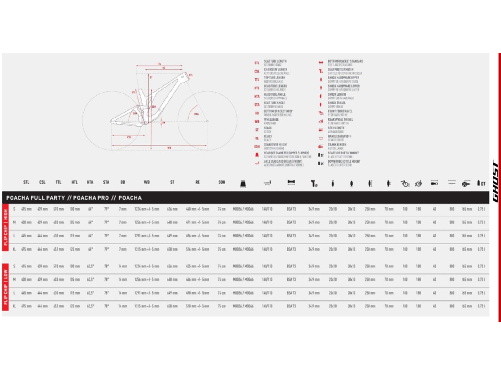 GHOST nabízí tři varianty modelu. Základní model POACHA sází na odolný RockShox set – vepředu vidlice ZEB Select, vzadu tlumič Vivid Select. Verze PRO přidává prémiový tlumič Fox 38 Factory Grip X2 a výkonné brzdy TRP DH-R Evo. A ti, kteří chtějí to nejlepší, zvolí POACHA FULL PARTY – vybavený RockShox ZEB Ultimate, Vivid Ultimate a bezdrátovým pohonem SRAM GX AXS T-Type – plus integrovaným multiklíčem XLC skrytým ve sloupku vidlice.