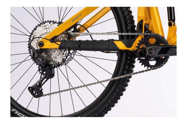 Moderní rám RIOT AL je v kolekci 2025 ve dvou kategoriích: ALL MOUNTAIN a TRAIL. Přepákování tlumiče zadní stavby s názvem Traction Link® přináší tuny zábavy, kontroly a potřebné tuhosti ve sjezdových pasážích a neomezuje jezdce ani při cestách nahoru.