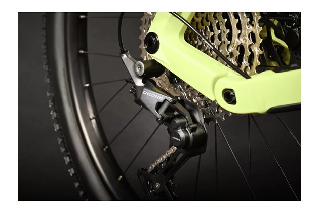 Kvalitní vzduchové odpružení Rock Shox se zdvihy 160 mm vyžehlí jakoukoliv nerovnost a ve sjezdech se můžete spolehnout na vysoký brzdný výkon čtyřpístkových kotoučových brzd Shimano MT420. Řazení obstarávají osvědčené komponenty Shimano Deore s 1x12 převody.