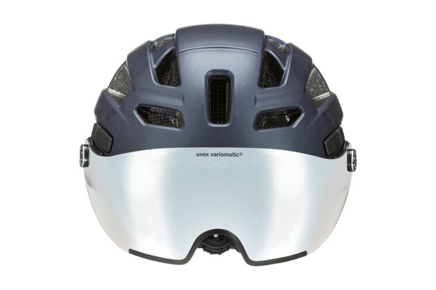 Hlavním trumfem je integrované hledí uvex variomatic®, které se samočinně zabarvuje podle světelných podmínek a zajišťuje příjemný výhled bez neustálého přehazování brýlí. Hledí chrání oči před sluncem, větrem i prachem a je praktické i pro nositele dioptrických brýlí (OTG). Kromě toho nabízí 100% ochranu proti UVA, UVB a UVC a je řešené s důrazem na každodenní použitelnost v provozu.