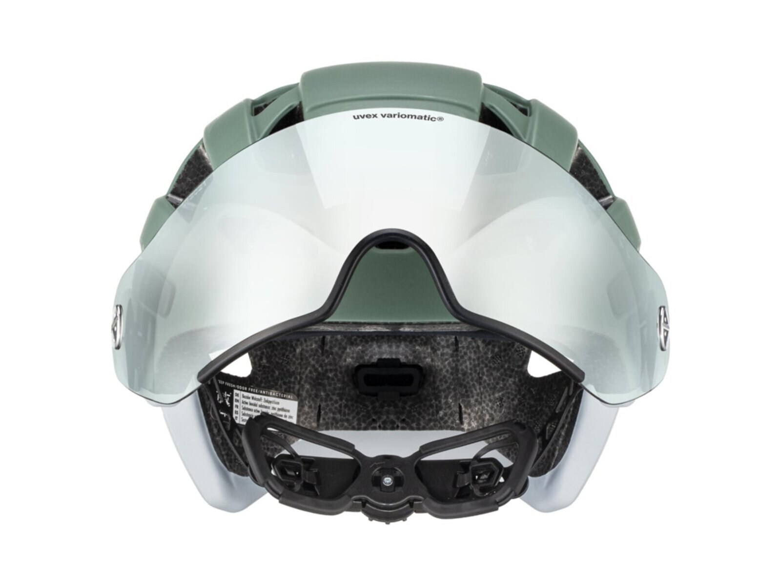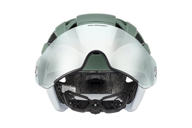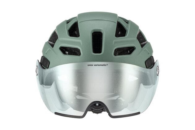 Hlavním trumfem je integrované hledí uvex variomatic®, které se samočinně zabarvuje podle světelných podmínek a zajišťuje příjemný výhled bez neustálého přehazování brýlí. Hledí chrání oči před sluncem, větrem i prachem a je praktické i pro nositele dioptrických brýlí (OTG). Kromě toho nabízí 100% ochranu proti UVA, UVB a UVC a je řešené s důrazem na každodenní použitelnost v provozu.