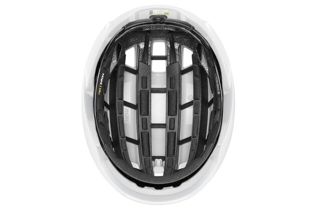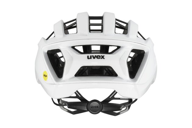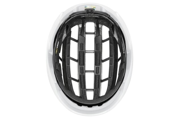 O vysokou pevnost při zachování nízké hmotnosti se stará konstrukce Multi Inmould s integrovanou pěnovou výztuží. Bezpečnost dále posiluje systém Mips® Air Node, který pomáhá snižovat rotační síly při šikmých nárazech a tím zvyšuje úroveň ochrany. Ergonomický uvex 3D IAS Pro system umožňuje rychlé a přesné doladění velikosti, aby helma seděla stabilně bez tlakových bodů i při závodním tempu.