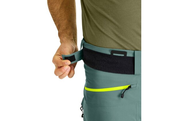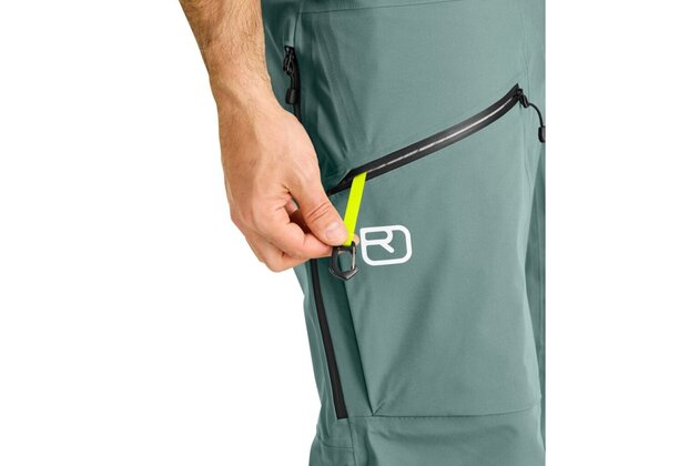 Kalhoty mají množství praktických kapes, do kterých uložíte veškeré vybavení, které potřebujete mít po ruce. Jedna přední kapsa je ideální na drobnosti jako například klíče a peněženka. Na stehnech jsou dvě zvětšené kapsy, do kterých můžete uložit například šátek nebo náhradní rukavice. V pravé stehenní kapse nalezneš lehkou karabinku na uchycení lavinového vyhledávače. Kalhoty mají po bocích větrací zipy, takže vám ani při výšlapu nebude příliš teplo.