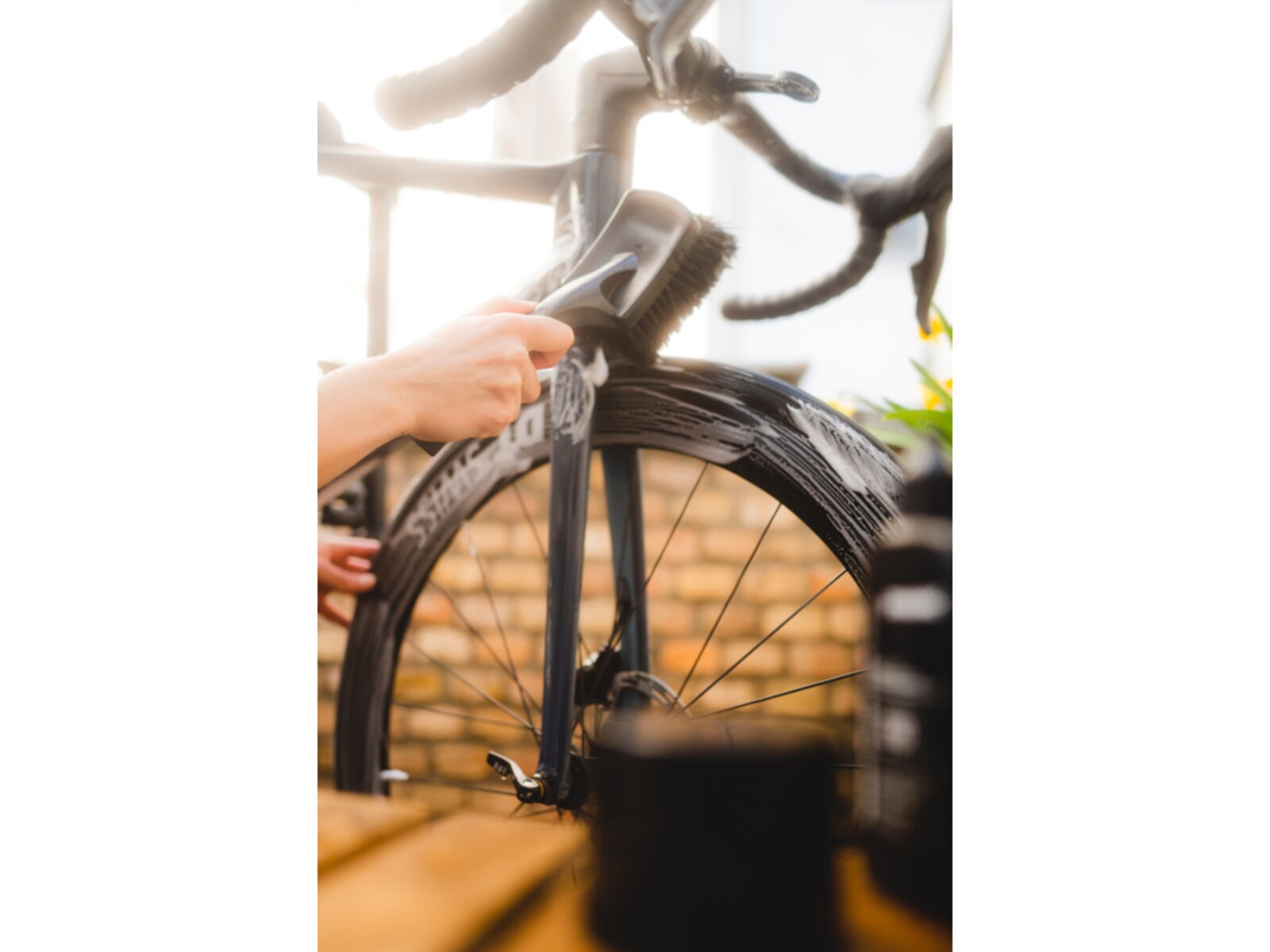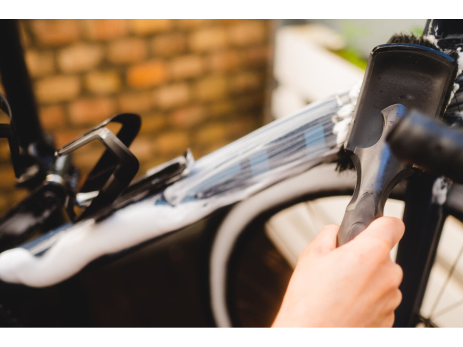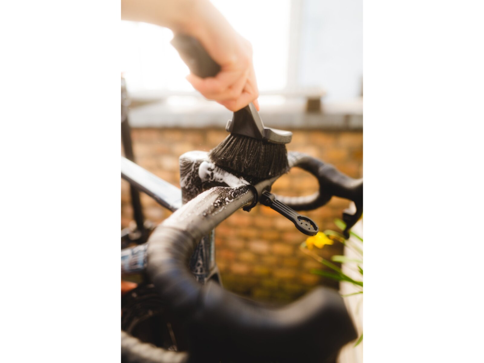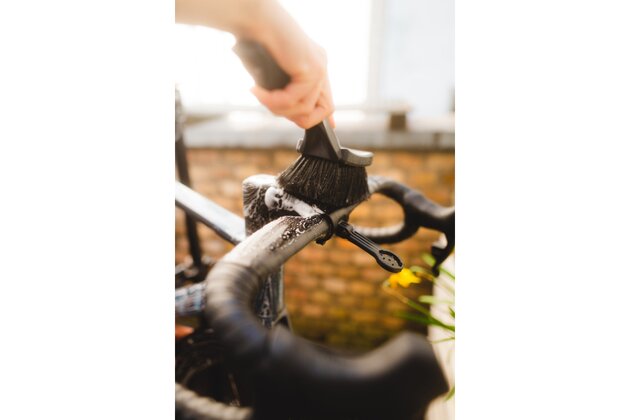 Kartáč na kolo s měkkými štětinami je navržen speciálně pro bezpečné použití na všech typech kol. Díky svému zvětšenému kartáčovému tělu umožňuje rychlé a efektivní čištění, zatímco pogumované nárazové zóny chrání rám před poškozením.