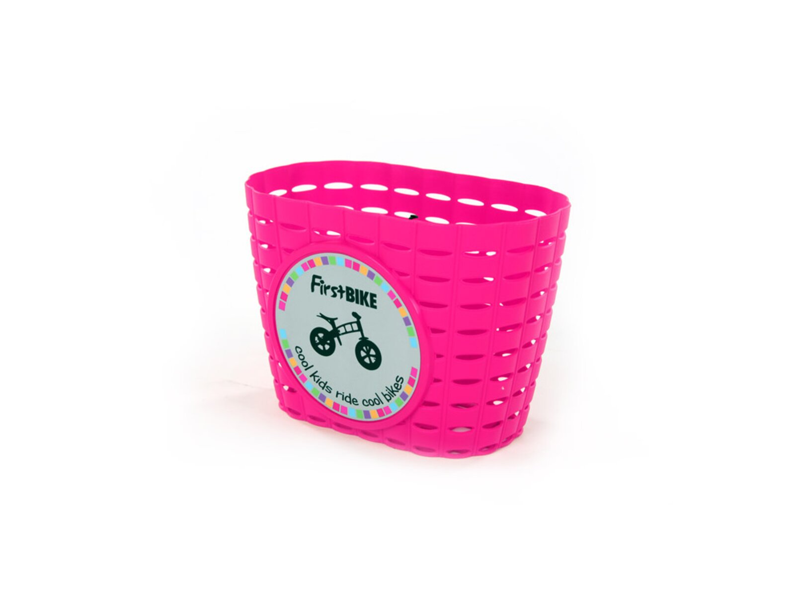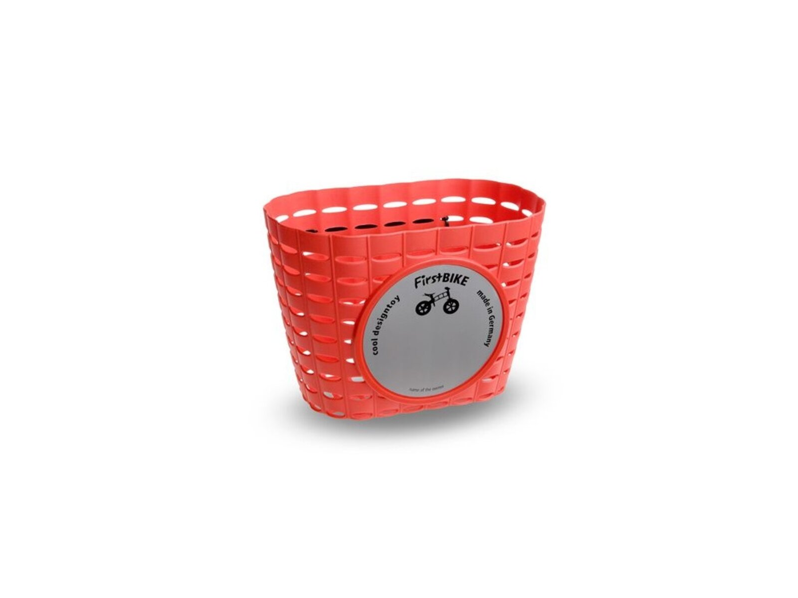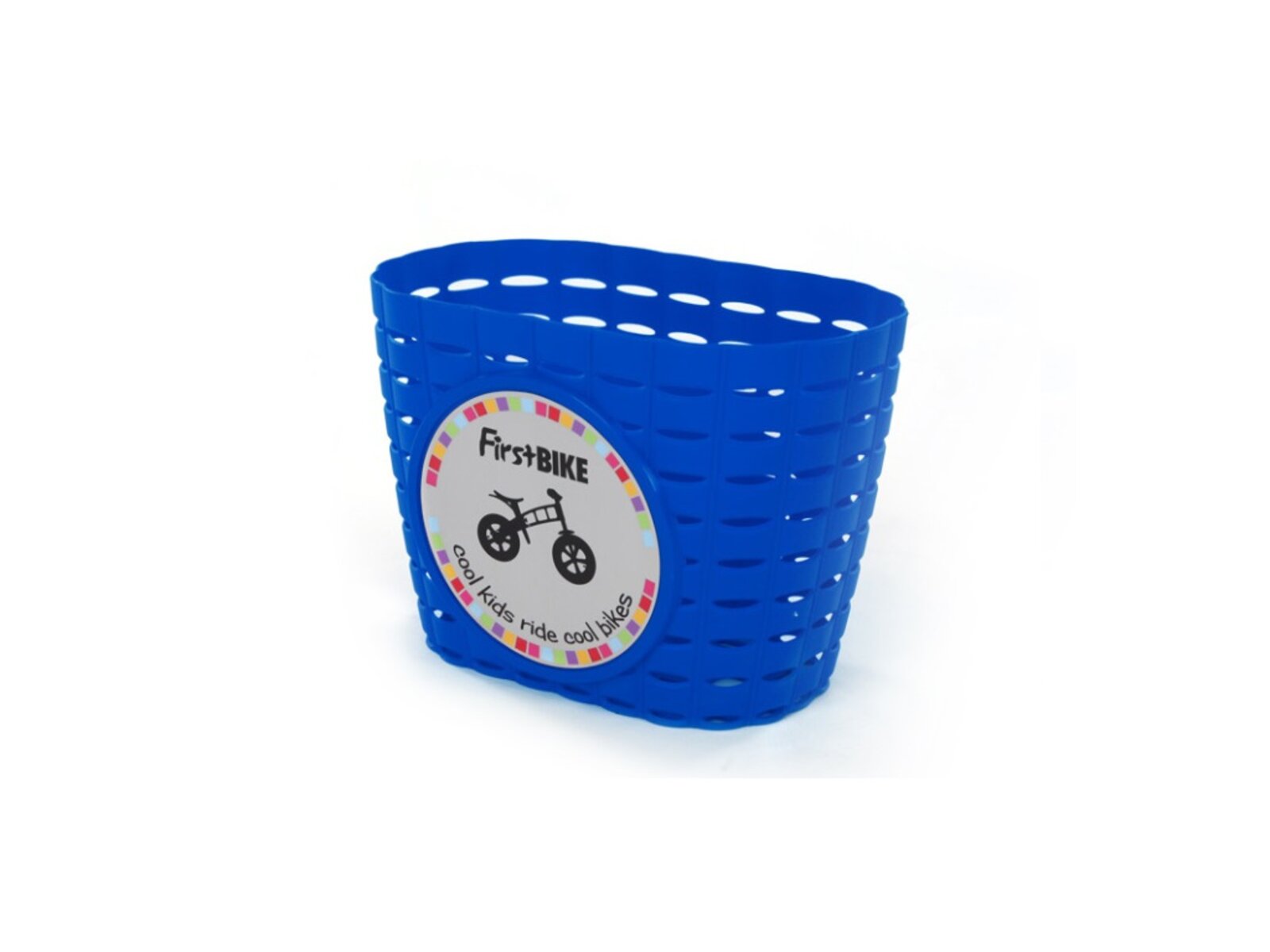 Praktický košík na řídítka k odrážedlům First Bike. Spousta místa na dobroty, hračky a všeho, co vám cestou cvrnkne do nosu.