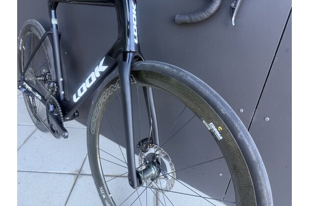 Představec: LOOK Combo Aero Carbon. Úhel -7°. Hmotnost: 140 g. Plně integrovaný. (Délka: XXS: 80 mm, XS: 90 mm, S: 100 mm, M/L: 110 mm, XL: 120 mm)