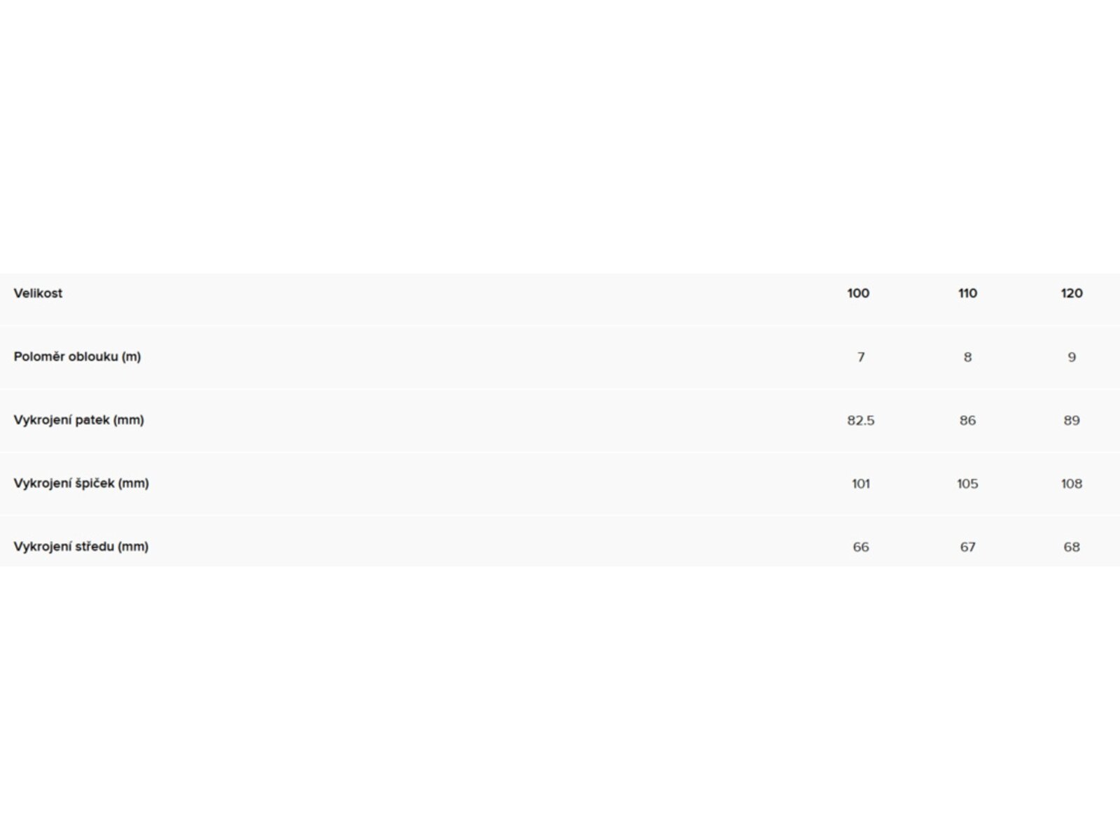 Úhly hran: 87° boční / 1,3° odklon od skluznice
