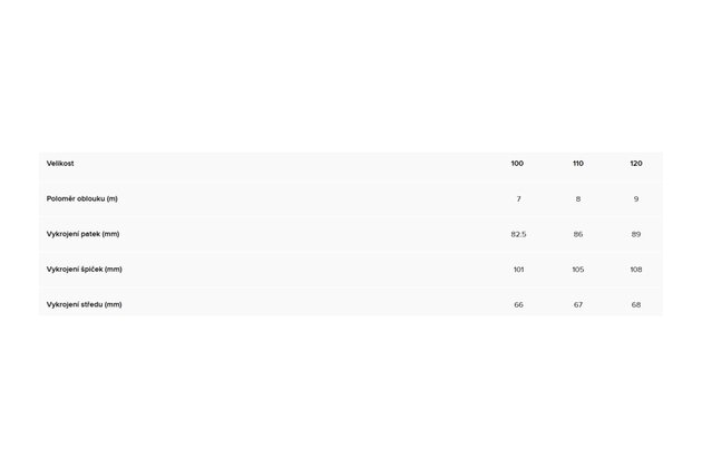 Hmotnost jedné lyže: 1409 g (110 cm)