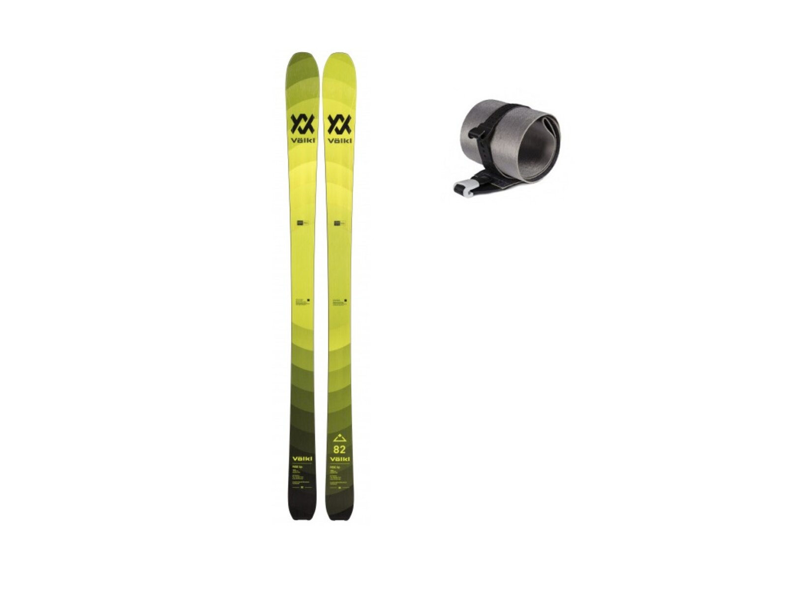 Lyže jsou dodávány v setu se stoupacími pásy Völkl Rise Up 82 Skins, které jsou přesně předtvarovány.