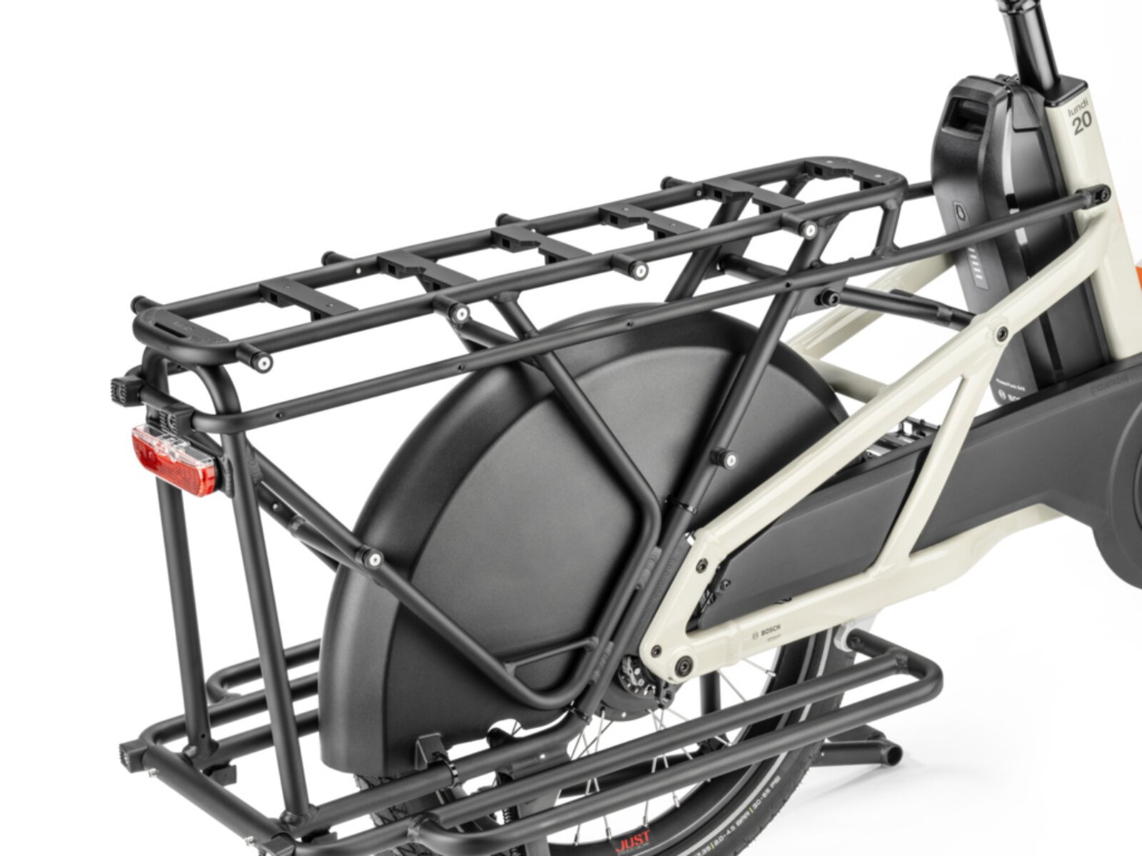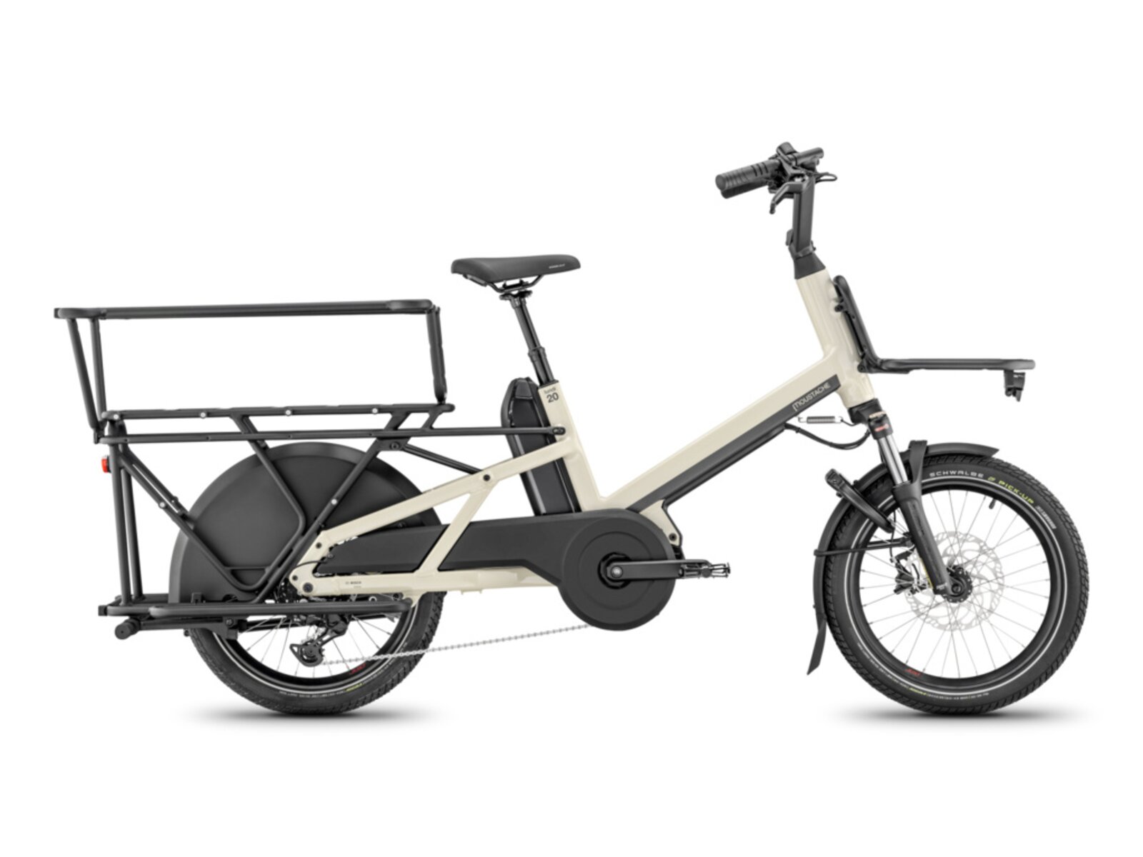 MOUSTACHE Lundi 20 Cargo 3 +EQ v barvě Silk Grey je plně vybavená verze oblíbeného elektrického cargokola připravená zvládnout každodenní výzvy ve městě i mimo něj. Srdcem kola je výkonný motor Bosch Cargo Line Smart System s točivým momentem 85 Nm, který si hravě poradí i s těžkým nákladem a kopcovitým terénem. Podle potřeby můžete zvolit baterii PowerPack 545 Wh nebo 800 Wh.