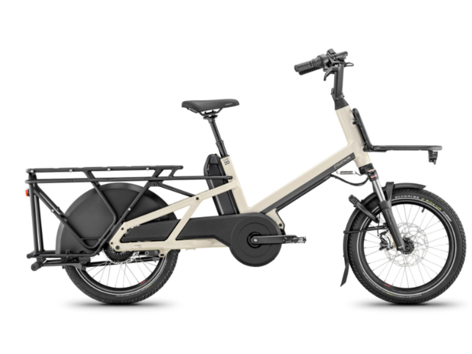 Kolo je postaveno na robustních 20" kolech s plášti Schwalbe Pick-Up 2.35" a hydraulickými brzdami Magura MT4. Zadní nosič s nosností až 70 kg je kompatibilní s MIK HD i QL3 standardy, takže upevnění dětských sedaček nebo nákladu je maximálně snadné.