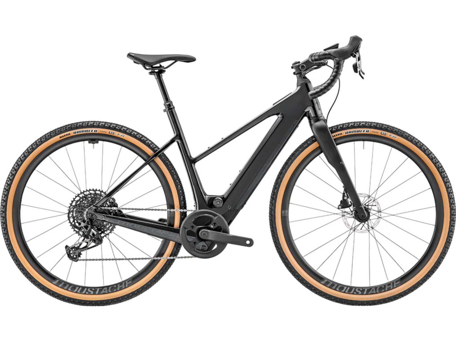 Na komfortu si tento model zakládá: karbonová vidlice efektivně tlumí vibrace, elastomerový představec a teleskopická sedlovka EXA se zdvihem 75 mm zajišťují pohodlnou a stabilní jízdu i na dlouhých a rozbitých cestách. Komponenty SRAM Apex 1x12 s kazetou 11–50 zubů přinášejí široký rozsah převodů pro různé terény, zatímco 50mm pláště Maxxis Rambler a kotoučové brzdy SRAM Apex se postarají o kontrolu za všech podmínek.