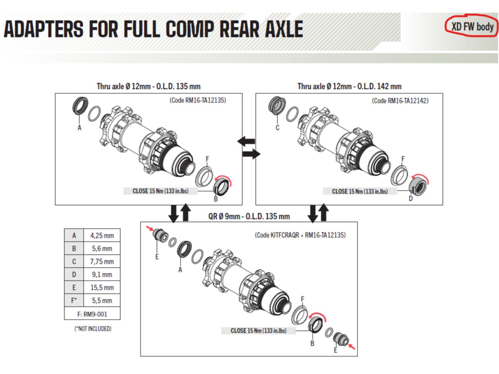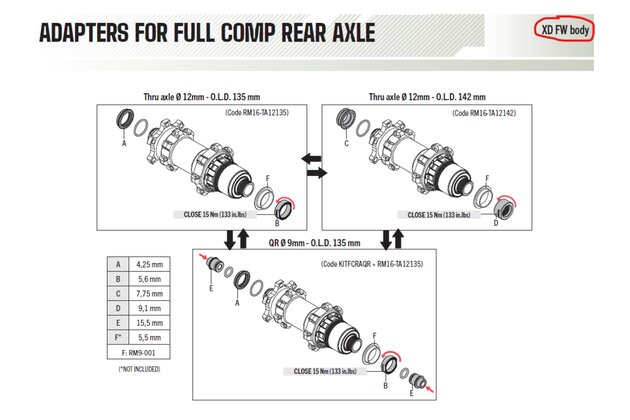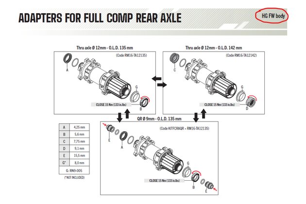 | Technické parametry Náhradní díly FULCRUM Option kit 142/135 HH12 |