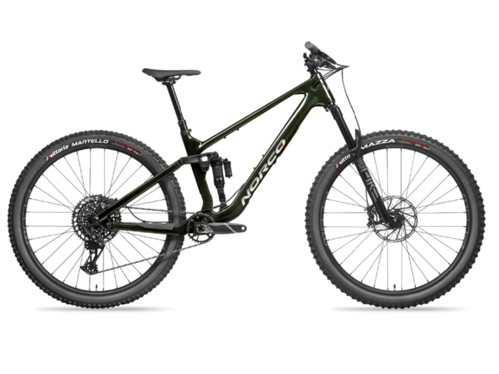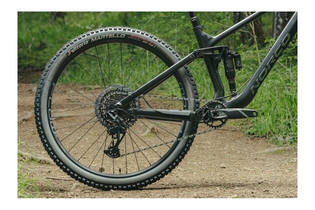 Celoodpružený trailový stroj NORCO Fluid C2 je navržený pro pokročilé a ambiciózní jezdce. Nabízí skvělou kombinaci výkonu, odolnosti a přesného ovládání. Hlavní trojúhelník z karbonových vláken a hliníkové vzpěry zaručují nízkou hmotnost a vysokou odolnost. Přední odpružení zajišťuje vidlice RockShox Pike Select+ se 140 mm zdvihu a 130 mm zadního zdvihu tlumič RockShox Super Deluxe Ultimate. Geometrie Ride Aligned™ poskytuje přizpůsobení specifické velikosti rámu pro dokonalou rovnováhu a ovladatelnost na trailu. Pohon SRAM GX Eagle s 12 rychlostmi a širokým rozsahem převodů 10-52T usnadňuje šlapání v náročném terénu, hydraulické kotoučové brzdy SRAM G2 RS s 200mm předním a 180mm zadním kotoučem vynikající brzdný výkon. Samozřejmostí je nastavitelná teleskopická sedlovka SDG Tellis VS s délkou 150 mm (S), 170 mm (M) a 200 mm (L, XL), vnitřní vedení kabeláže a integrovaná ochrana rámu.